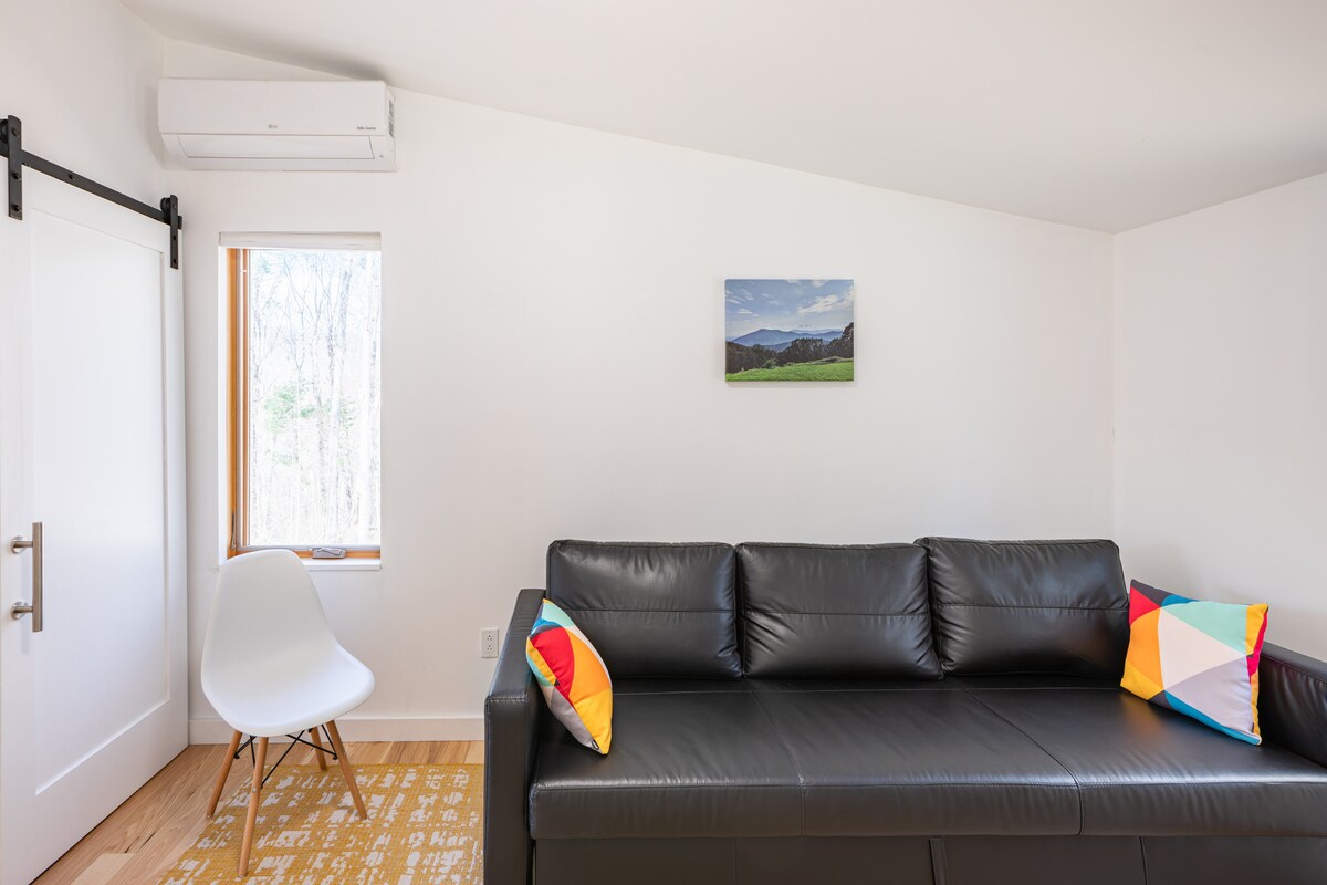Beckets Run Cottage: cerca de Charlottesville, pero cerca de Blue Ridge, bodegas y locales de cerveza artesanal. Interior moderno con porche cubierto, pantalla que da a nuestros pastos para caballos. Un dormitorio (reina) , sala de estar/comedor con nueva estufa de leña y sofá cama completo. La cocina tiene cafetera, tostadora, platos, vasos, utensilios para cuatro. Calefacción eléctrica de zócalo y aire acondicionado en el dormitorio. Excelente lugar para sentarse y relajarse entre sus excursiones. Un refugio rural tranquilo. ¡Ven a visitarnos!