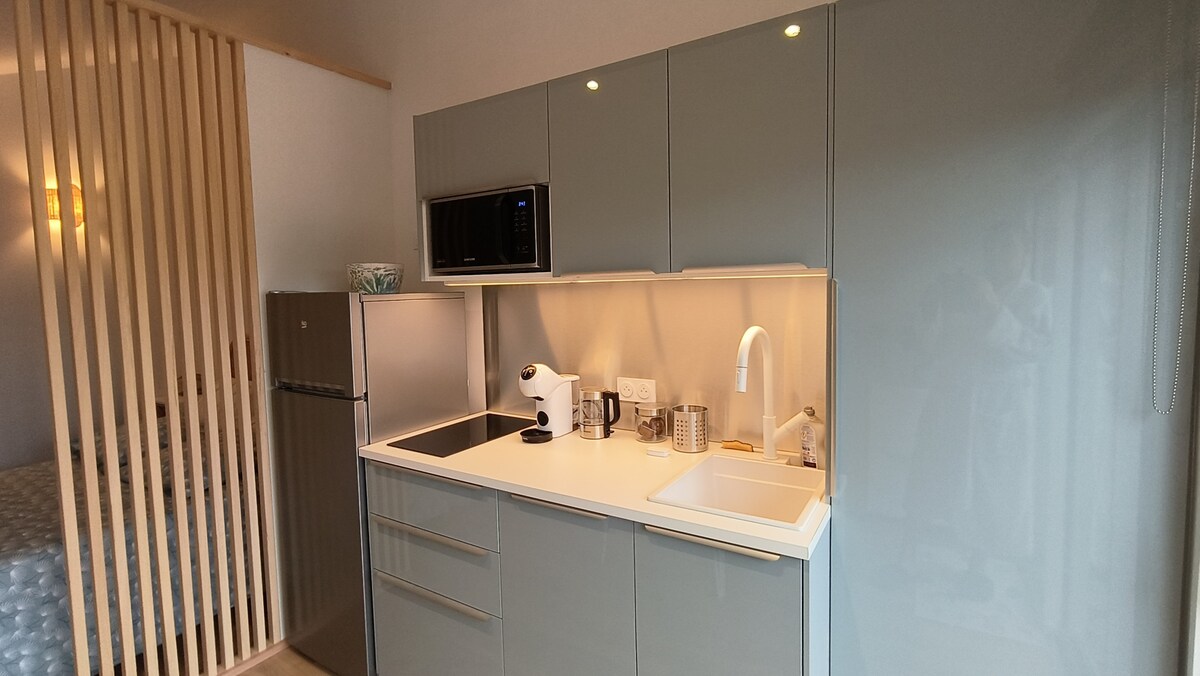 Bienvenido a Cabanon Ocean, una acogedora cabaña de madera entre el océano, el lago y el bosque de pinos. Perfecto para 2 o una familia de 4. Un dormitorio con una cama de 160 cm, además de dos sofás cama en la sala de estar. Disfruta de una terraza de 13 m² y una estufa de leña para noches acogedoras. A 10 minutos en bicicleta de las playas y del centro de Lacanau; carriles bici, paseos por el bosque, surf y golf cerca. Una escapada sencilla y auténtica para bajar el ritmo, reconectar y respirar.