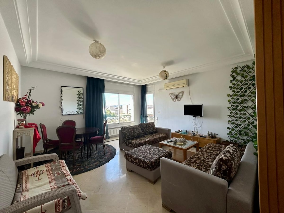 Bienvenue dans cet appartement Mid-Century au 4ᵉ étage (sans ascenseur), au cœur de Tunis mais dans un quartier calme ! Entièrement pour vous : deux chambres confortables, grand salon, bureau et coin thé. Décor soigné, vue magnifique. Tout l’équipement nécessaire est là et le confort est garanti. Je suis toujours disponible et partage volontiers mes meilleures adresses pour que votre expérience à Tunis soit parfaite ! Un appartement parfait pour découvrir Tunis.