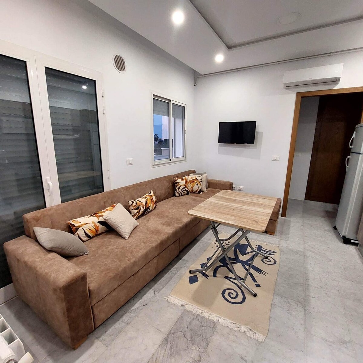Apartamento nuevo, lujoso y perfectamente ubicado en Ennasr, en una residencia moderna y segura justo detrás de la clínica Amilcar. Disfrute de un salón luminoso con TV grande, IPTV/Netflix y una elegante zona de comedor. La habitación ofrece una cama prémium, un bonito espacio de almacenamiento y un segundo televisor. Cocina moderna totalmente equipada, baño elegante de mármol. Fibra de alta velocidad, aire acondicionado en cada habitación, electrodomésticos nuevos y aparcamiento privado. Un entorno elegante y cómodo para una estadía inolvidable.