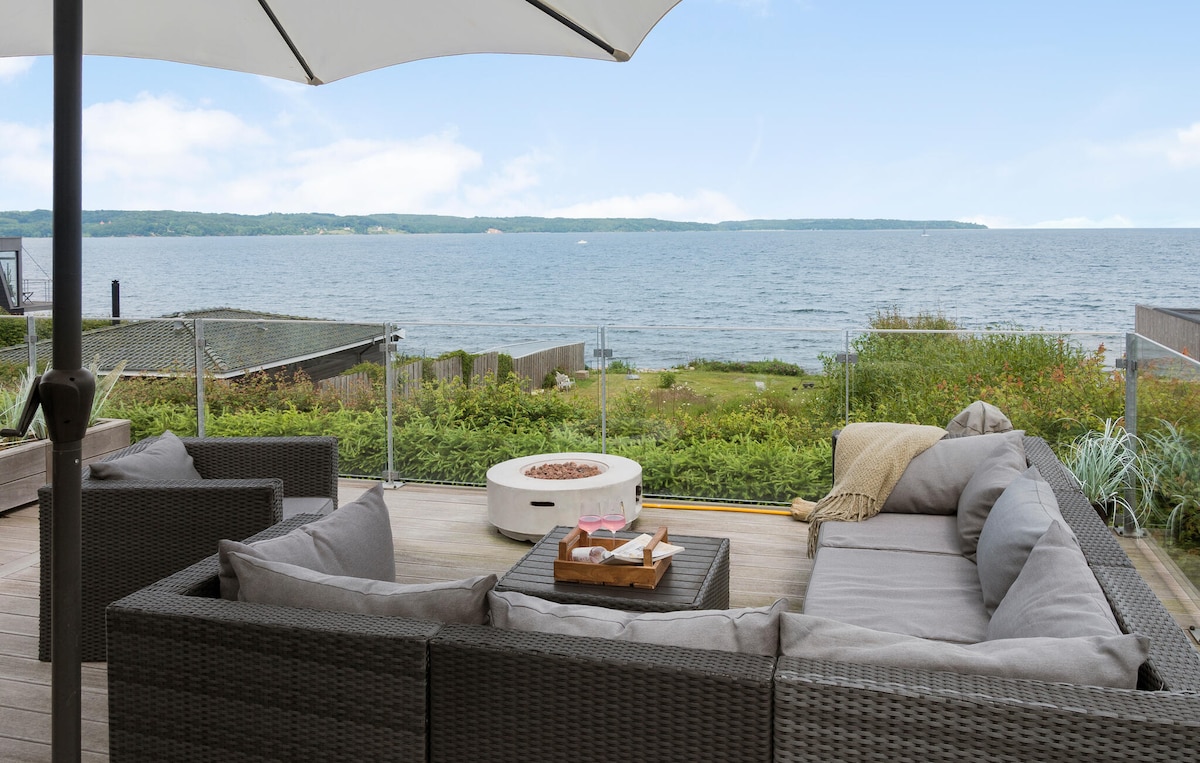 Bienvenido a esta moderna casa de vacaciones de lujo junto a la playa de Grønninghoved con unas vistas inmejorables del fiordo de Kolding, ideal para varias familias. La casa ofrece espacios abiertos, grandes ventanas, una cocina bien equipada y sala de actividades con billar y tenis de mesa. Al aire libre, hay una terraza soleada con jacuzzi, sauna de barril, sala de estar y barbacoa. Ubicado cerca de playas aptas para niños y hermoso bosque con camino a Skamlingsbanken, es ideal tanto para relajarse como para actividades para toda la familia.