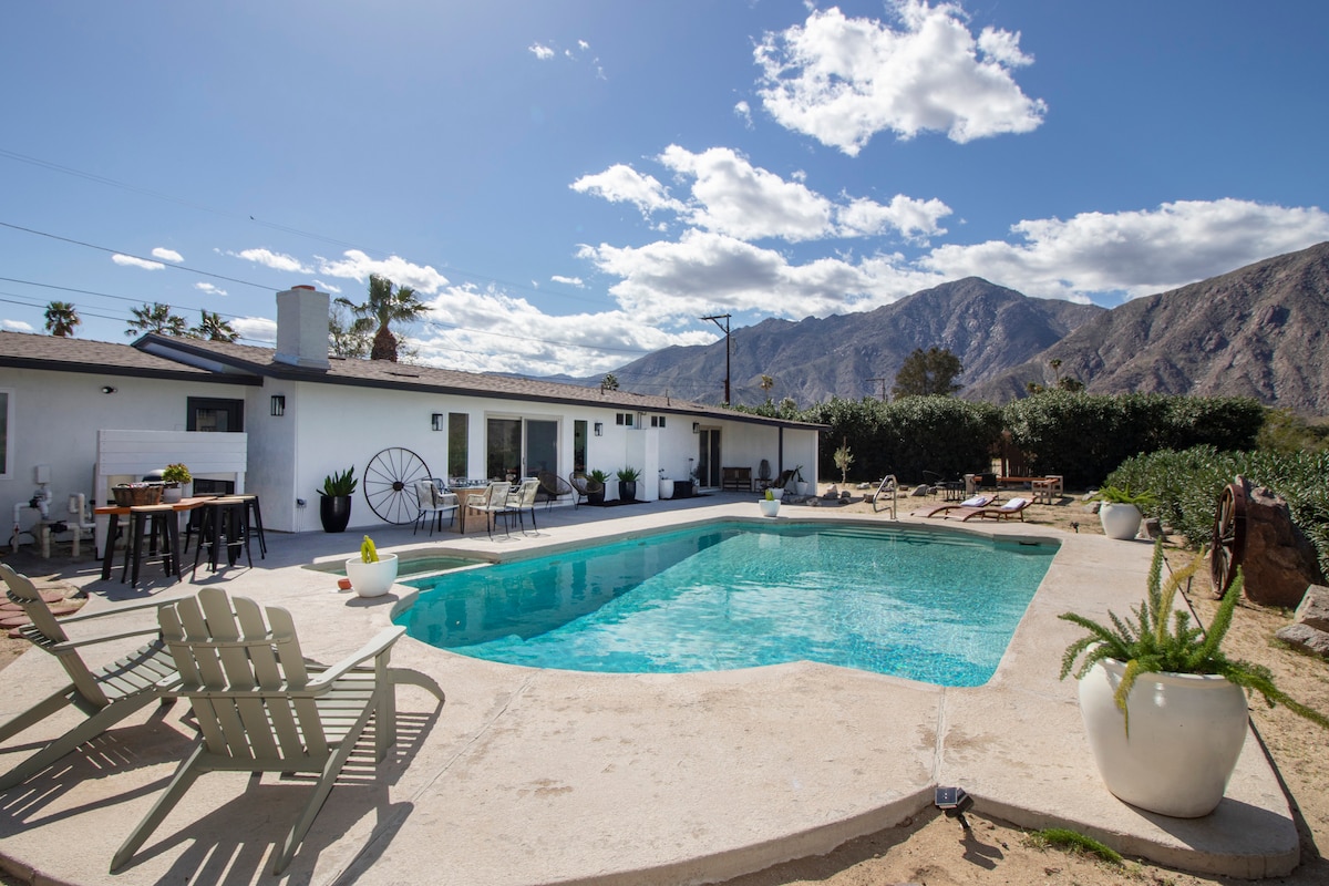 Casa de mediados de siglo recientemente reformada con piscina en el hoyo 13 del De Anza Country Club. Echa un vistazo de cerca a las fotos para ver la calidad de la renovación. Gran lote, maravillosas áreas de patio, vistas a las montañas, Coyote Canyon y campo de golf. ¡Privacidad total! Relájate bajo el sol, nada en la piscina durante los meses de primavera, verano y otoño, haz una barbacoa junto a la piscina, ve una película con nuestra caja Roku o relájate después de un paseo en bicicleta o una caminata por el Parque Estatal Anza Borrego.