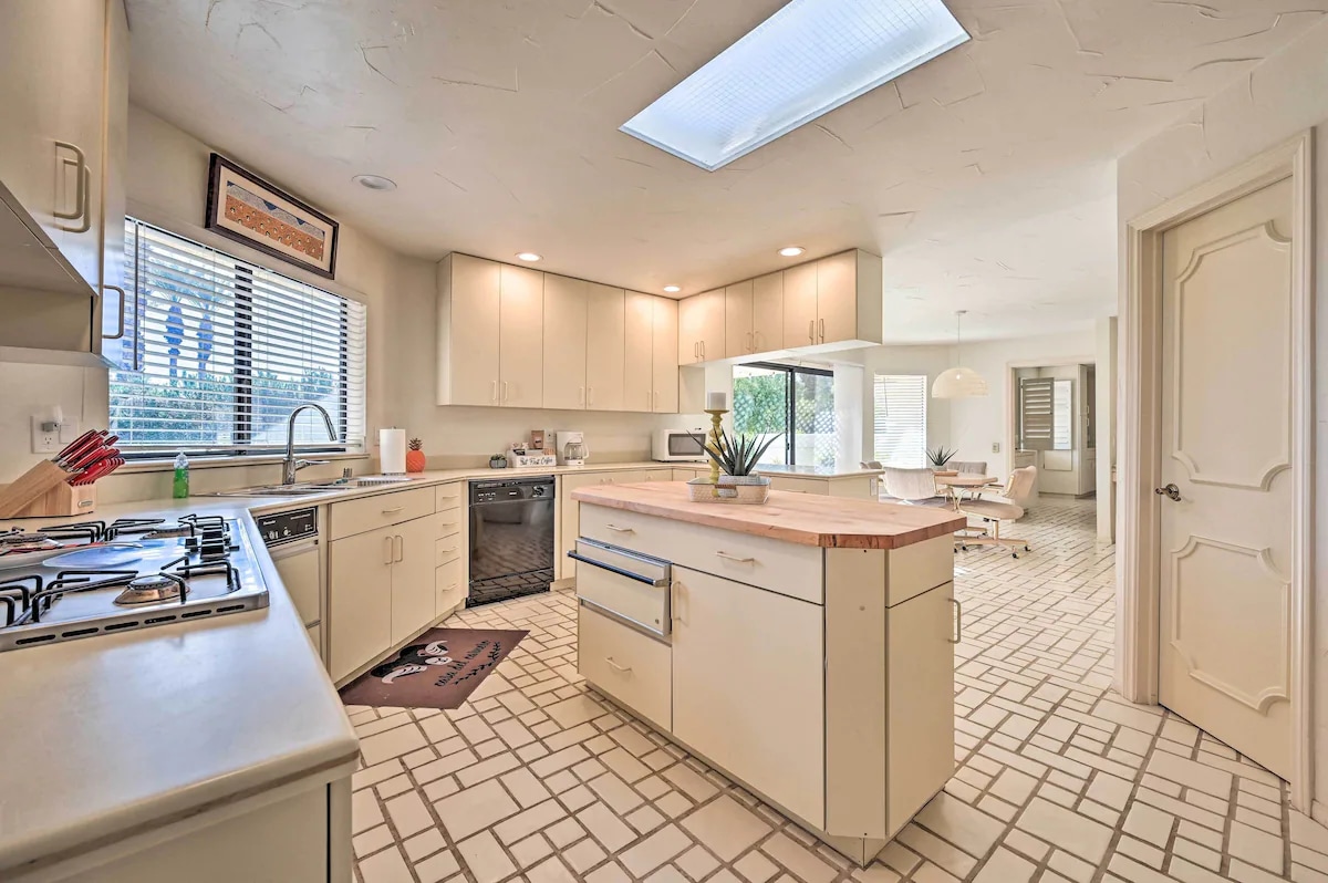 Ven a relajarte en el desierto en nuestra casa de estilo años 70 con muebles de época y papel tapiz colorido. Esta casa grande y espaciosa tiene espacio para todos y se encuentra en el hermoso DeAnza Country Club. Acceso directo a vistas abiertas al desierto o caminatas en el Parque Estatal Anza Borrego. Dos dormitorios, una guarida con sofá cama, una gran sala de estar abierta con comedor, dos baños y una piscina cubierta única (climatizada en invierno).