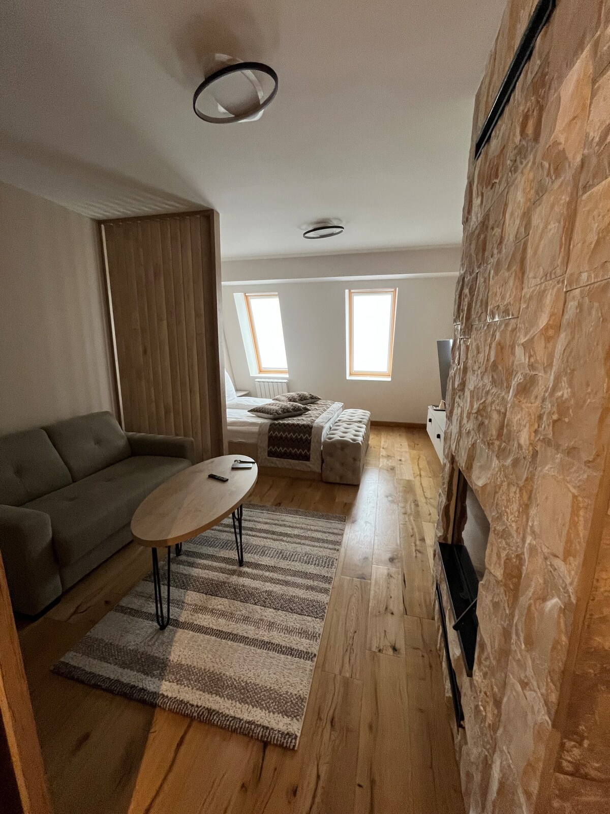 Este espacio único tiene su propio estilo. Se encuentra dentro del Aparthotel Vučko, en el corazón de Jahorina, a 50 metros de la pista de esquí de Poljica y a 28 km de Sarajevo. El departamento cuenta con su propio balcón. Dentro del hotel, los huéspedes pueden utilizar todos los servicios del hotel por un costo adicional: spa, gimnasio, jacuzzi, sala de juegos, restaurante, bar. El restaurante sirve platos bosnios, regionales e internacionales seleccionados. Hay WiFi gratuito disponible en toda la propiedad en este lugar único y familiar.