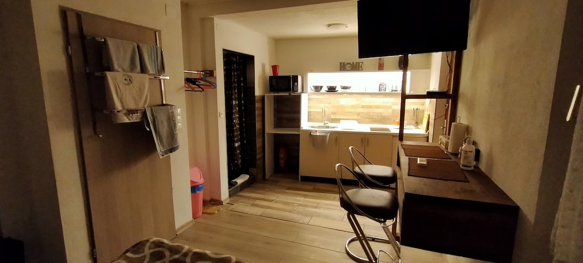 Relájese en este alojamiento único y tranquilo. Apartamento adicional adecuado para dos personas que tiene todo lo necesario para unas vacaciones / pernoctación. Apartamento muy cálido y cómodo, no muy lejos del centro de la ciudad, muy cerca de otros edificios: Embajadas de Estados Unidos, China, Arabia Saudita, Catar, clínica Vatanmed, centro Importane, torre Avaz, hospital militar, estación de tren, estación de autobuses, todas estas instalaciones están a 10 minutos a pie. Sarajevo City Center, el centro comercial más grande, así como Alta, están a 10 minutos a pie.