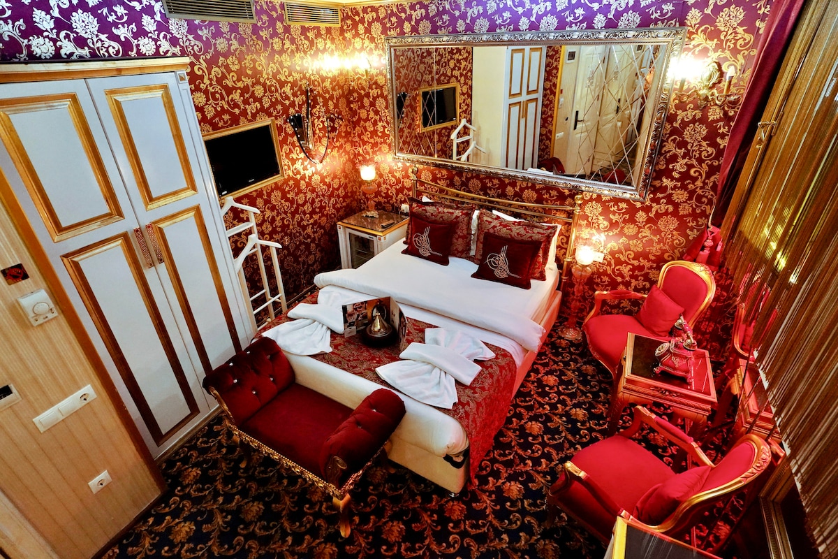 La ubicación es inmejorable. Puedes ver las antiguas murallas del Palacio de Topkapi desde tu balcón. ¡La famosa Santa Sofía está a poca distancia de piedra! La suite tiene 50 m2, hay 1 cama tamaño queen, 1 cama portátil (opcional) y baño de diseño moderno en el traje. Esta suite de lujo se encuentra en el último piso del Sublime Porte Hotel.