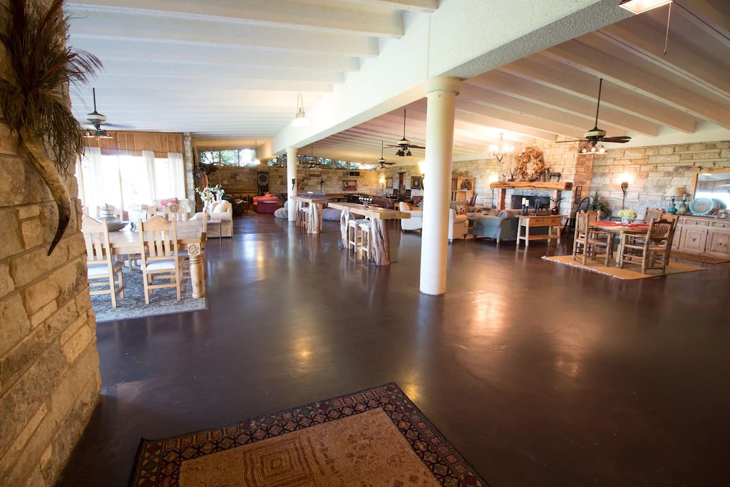 Tesoro escondido, excelente ubicación, situado lo suficientemente lejos de la ciudad como para disfrutar de la tranquilidad de la propiedad, pero a poca distancia en coche de Waco para disfrutar de todo lo que la ciudad tiene que ofrecer. Excepcionalmente limpio, bellamente decorado y equipado con muebles cómodos. El plano de planta abierta te permite visitar a los huéspedes mientras disfrutas de la gran cocina que está llena de comodidades. El impresionante patio ofrece un lugar tranquilo para relajarte y disfrutar de la naturaleza. ¡Excelente ubicación, gran valor, calidad de primera clase!