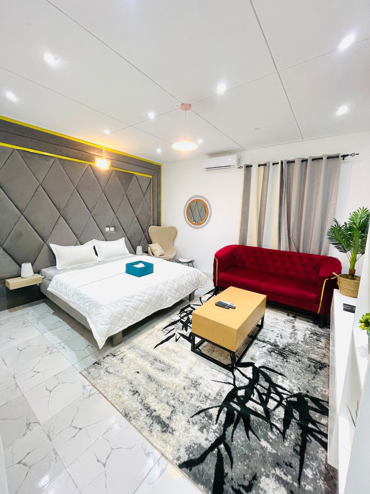 Our apartment is nestled just a 4-minute walk from the majestic Bouaké Stadium. Our charming residence is ideally located only 11 km (about 20 minutes) from Bouaké Airport and approximately 10 minutes by car from the dynamic downtown Bouaké. Whether you are here for leisure or business, you will find our location ideal for all your travel needs, offering easy access to the entire city as it is situated along a main road, while being in a peaceful area for restful nights.
