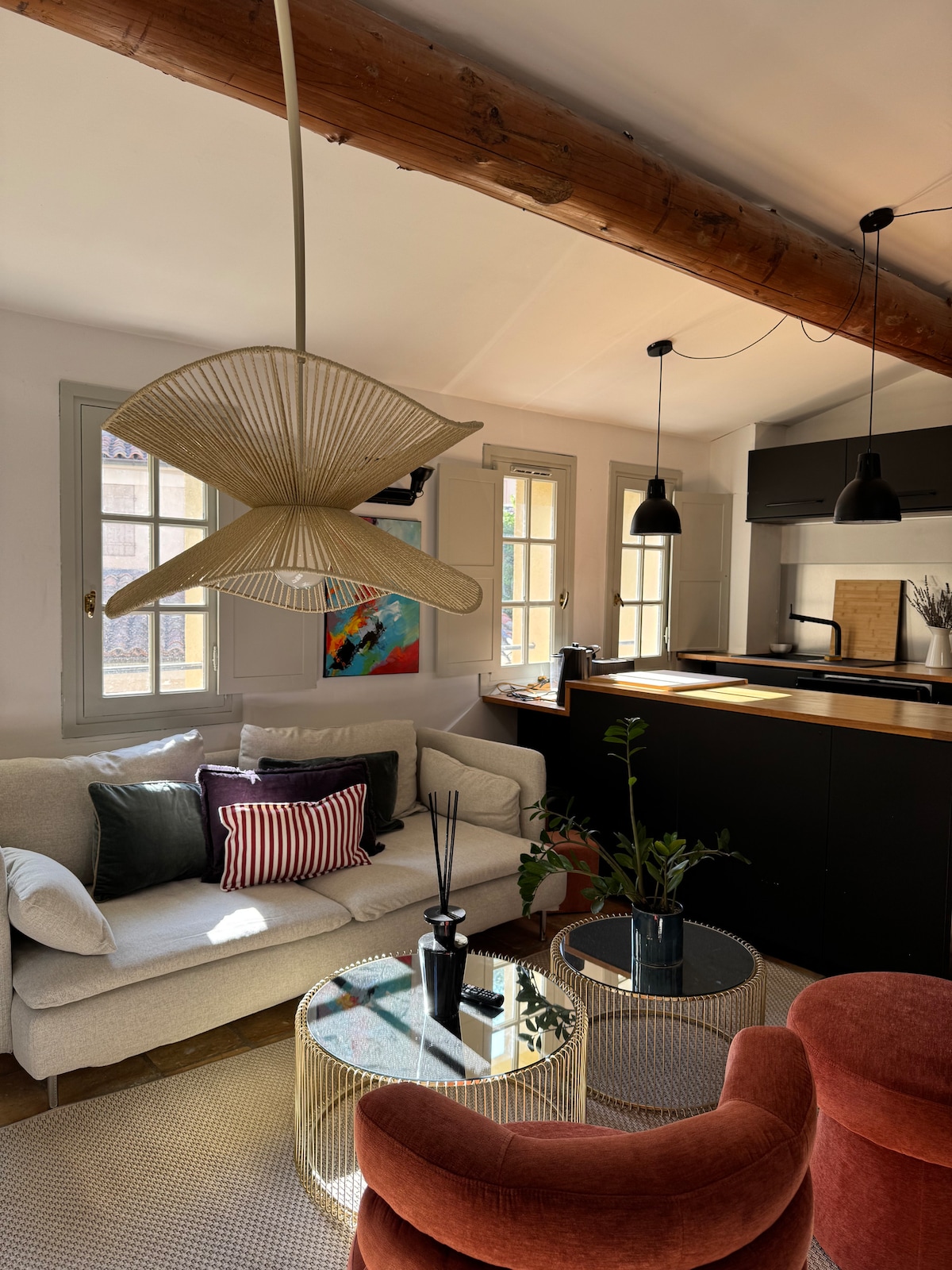 Nuestras casas rurales «Albert & Célestine» le dan la bienvenida al corazón de la Provenza. ¡Bienvenido a Lourmarin! Situado en la última planta de una antigua casa solariega cargada de historia, nuestro encantador y luminoso apartamento dúplex ofrece unas magníficas vistas sobre los tejados del pueblo. El piso da a la animada plaza principal con sus cafés y restaurantes. Sólo tiene que bajar las escaleras para desayunar en la terraza antes de salir a descubrir los tesoros del Luberon...