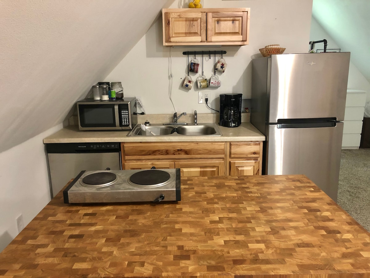 Quítate los zapatos en este nuevo loft tipo estudio en el tranquilo e histórico barrio de West Side. O ponte los zapatos y disfruta paseando por restaurantes locales, cervecerías, destilerías, tiendas, parques, senderos o el Centro de Eventos y Bodas St Vrain. En invierno, puedes echar un vistazo a la cordillera Flatiron de Boulder desde la ventana. En verano, mirarás hacia la vegetación de las copas de los árboles. Dos huéspedes como máximo. Lo sentimos, no se admiten niños de 1 a 12 años.