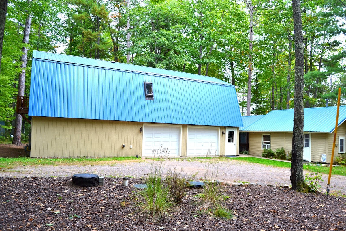 Esta es una casa de dos dormitorios y dos baños en un entorno sereno con acceso cercano a muchos servicios locales. Un dormitorio tiene una cama tamaño king, otro una cama tamaño queen y hay una cama tamaño queen y un sofá cama doble en la sala de estar. Cocina totalmente remodelada. Amplia terraza frente al bosque con parrilla y chimenea. ¡Ubicado en el sendero Bearskin para caminar, montar en bicicleta y en motos de nieve! Cerca de muchos lagos y atracciones. Fácil acceso desde la autopista, pero en una tranquila calle sin salida. Wifi gratuito/Smart TV. ¡Listo para crear recuerdos!