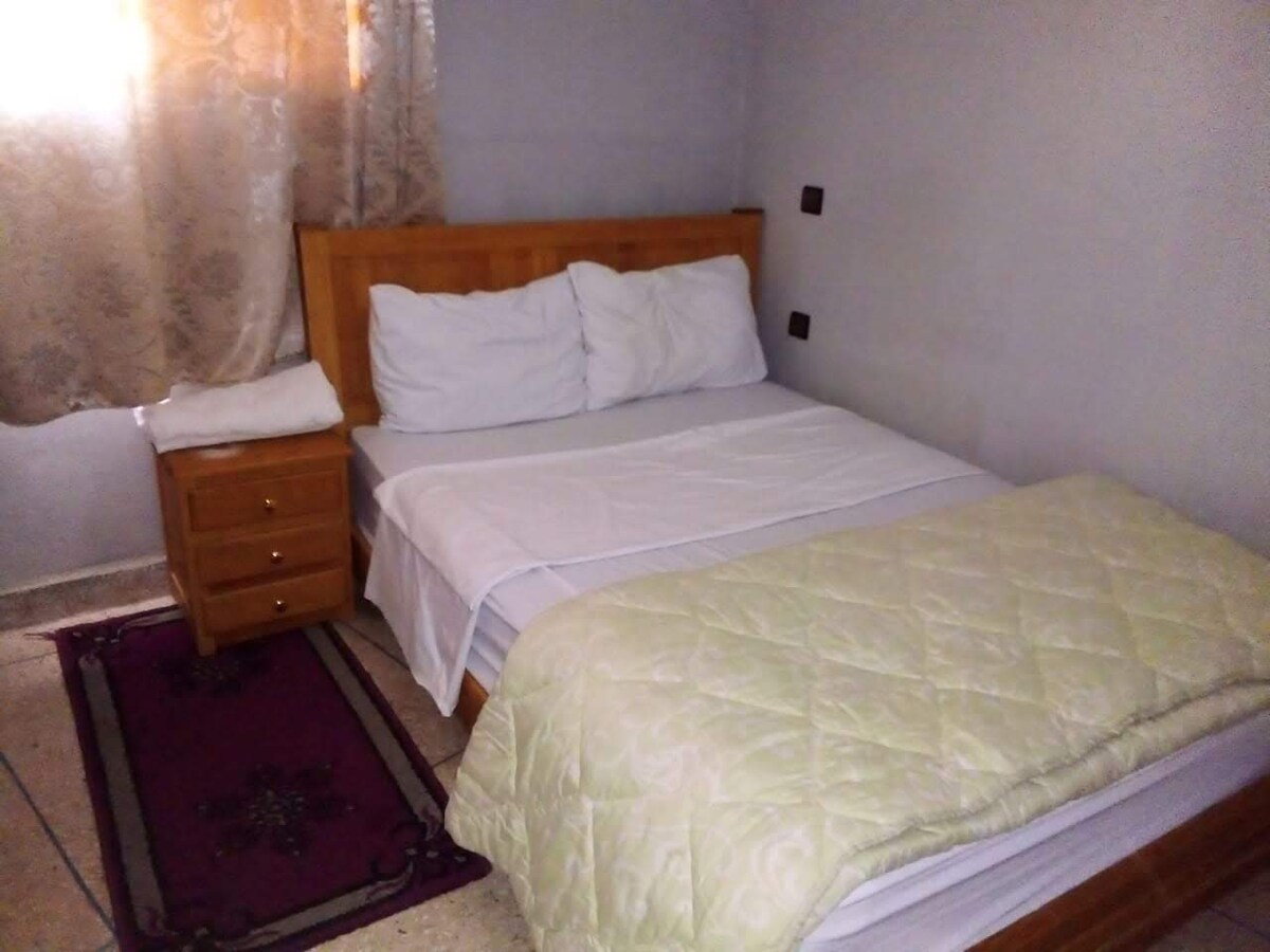 Alojamiento típico marroquí, con dos dormitorios, un gran salón, una cocina equipada y un baño. Disfruta de la tranquilidad de este encantador apartamento. Barrio seguro con guardia las 24 horas. Souq y tiendas cercanas. Calefacción en invierno. Agua caliente, inodoros de estilo occidental. Ciudad auténtica y llena de encanto.
