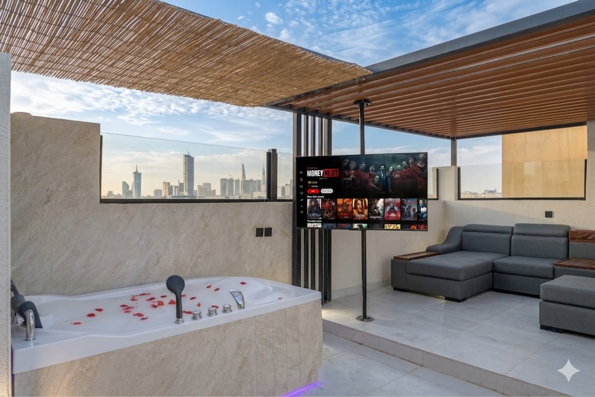 Apartamento de lujo en la azotea con vista a la ciudad KAFD (wifi)