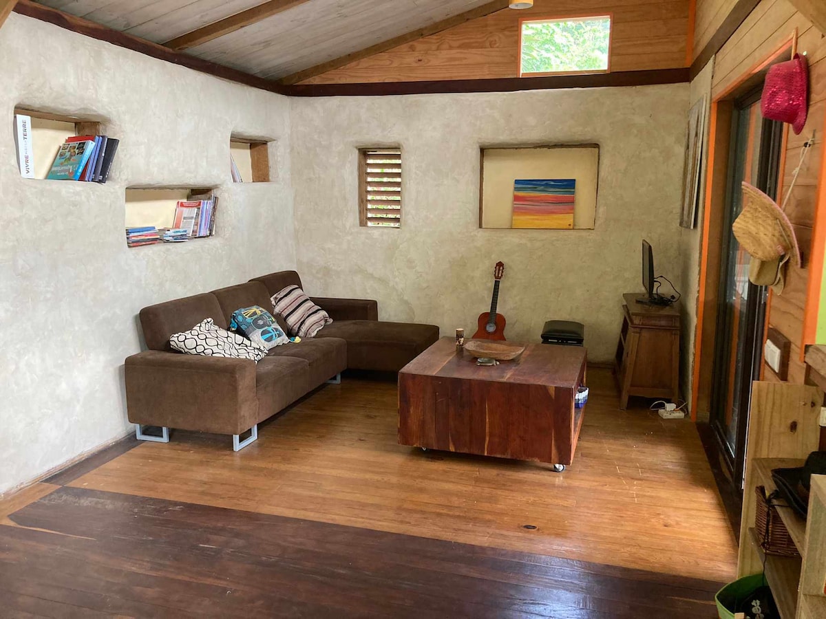 Regálese unos días en plena naturaleza, en el corazón del bosque del Col de la Pirogue en Païta, a 15 minutos de Tontouta y a 30 minutos de Numea. La tranquilidad, el exuberante entorno bordeado por el río, así como las numerosas aves le encantarán. La casa semiabierta consta de 2 dormitorios con camas dobles, una gran terraza y cocina semiabierta, un baño y una zona de barbacoa. Este alojamiento no está diseñado para grandes fiestas. Fuente de alimentación solar, inodoros secos.
