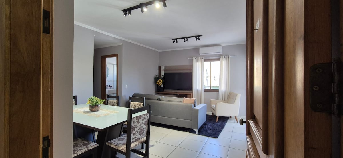 Apartamento con aire acondicionado frío y caliente, muy acogedor y equipado. ¡Calle tranquila, muy bien ubicado! Cerca de prácticamente todo: Cons Americano, centros comerciales, hospitales, farmacias, panaderías, supermercados, ferreterías, etc... A 4 cuadras del Cons Americano y del supermercado Carrefour Pizzería frente al edificio Panadería en la esquina y otra a 2 cuadras. Farmacias a 3/4 cuadras Centro comercial Wallig 1,2 km Shopping Iguatemi 2,5 km Hospitales Conceição 1,2 km y Cristo Redentor 1,8 km Aeropuerto 4 km