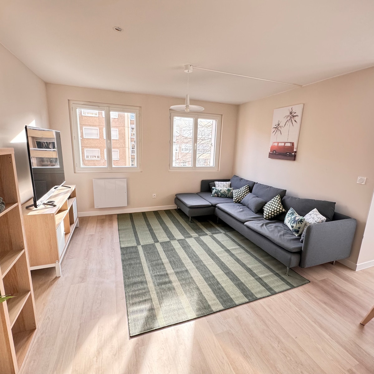 Bourgoin jallieu à proximité du centre ville appartement T2 entièrement rénové comprenant salon-séjour, dégagement avec rangements, cuisine indépendante toute équipée, 1 chambre avec placard et une salle d’eau avec WC. Le bien dispose d’une terrasse privative de 22m2 avec 1 place de parking. Environnement calme. Belle exposition. Proche des commodités (gare, commerces, cinéma, accès autoroute…). Equipements: store banne, barbecue, télé, bureau, machine à laver, lave vaisselle, frigo, cafetière…