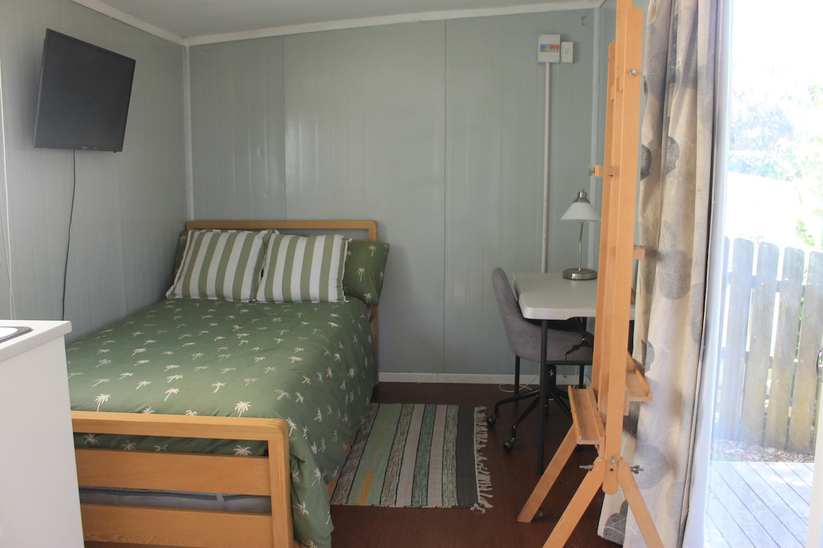 'The Fat Fish' is a perfect space for couples to chill, relax and enjoy the charm, beauty and laid back style that is Waihi Beach. It is an entire self contained Studio, with its own entrance, private courtyard and off street parking. Centrally located, it is a short 5 minute walk to the Beach, Restaurants, Bars, and the quaint and quirky Waihi Beach Village.