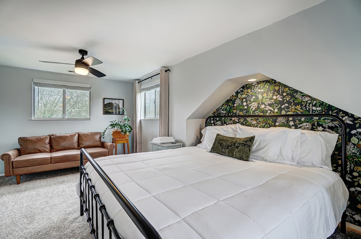 Relájate y desconecta en este alojamiento tranquilo y elegante. Ubicado en un terreno boscoso, disfrutarás de la vista de los árboles, así como de la proximidad a BGSU y al centro de BG. Se ofrece una cama tamaño king y un futón de tamaño completo. La cocina incluye una espaciosa nevera/congelador, cafetera Keurig K-cup, hervidor eléctrico, microondas, tostadora y placa de 2 quemadores. El café, el té y el agua son gratuitos. Ten en cuenta que este es un loft anexo sobre el garaje. Está separado de los alojamientos principales y tiene una entrada privada.