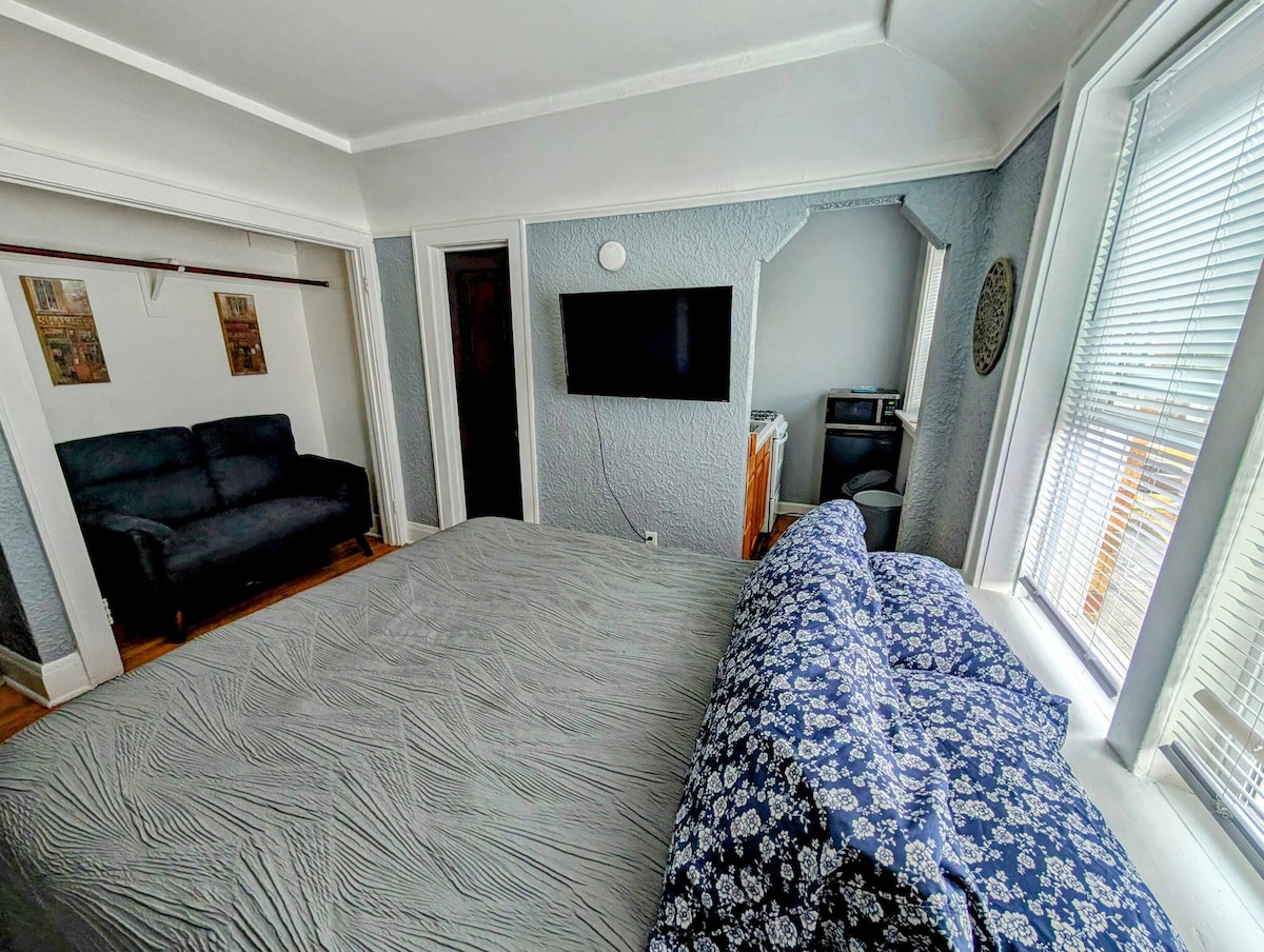 Este encantador dormitorio ofrece una cocina completa, cama tamaño king, baño privado completo, comedor y sala de estar. Convenientemente ubicado en el lado este de Milwaukee, cerca de senderos y caminos del lago, el parque Juneau, Brady Street, Fiserv Forum, el Museo de Arte y los terrenos de Summerfest. Alójate aquí y comienza el día con un hermoso amanecer en una de las mejores ubicaciones que Milwaukee tiene para ofrecer.
