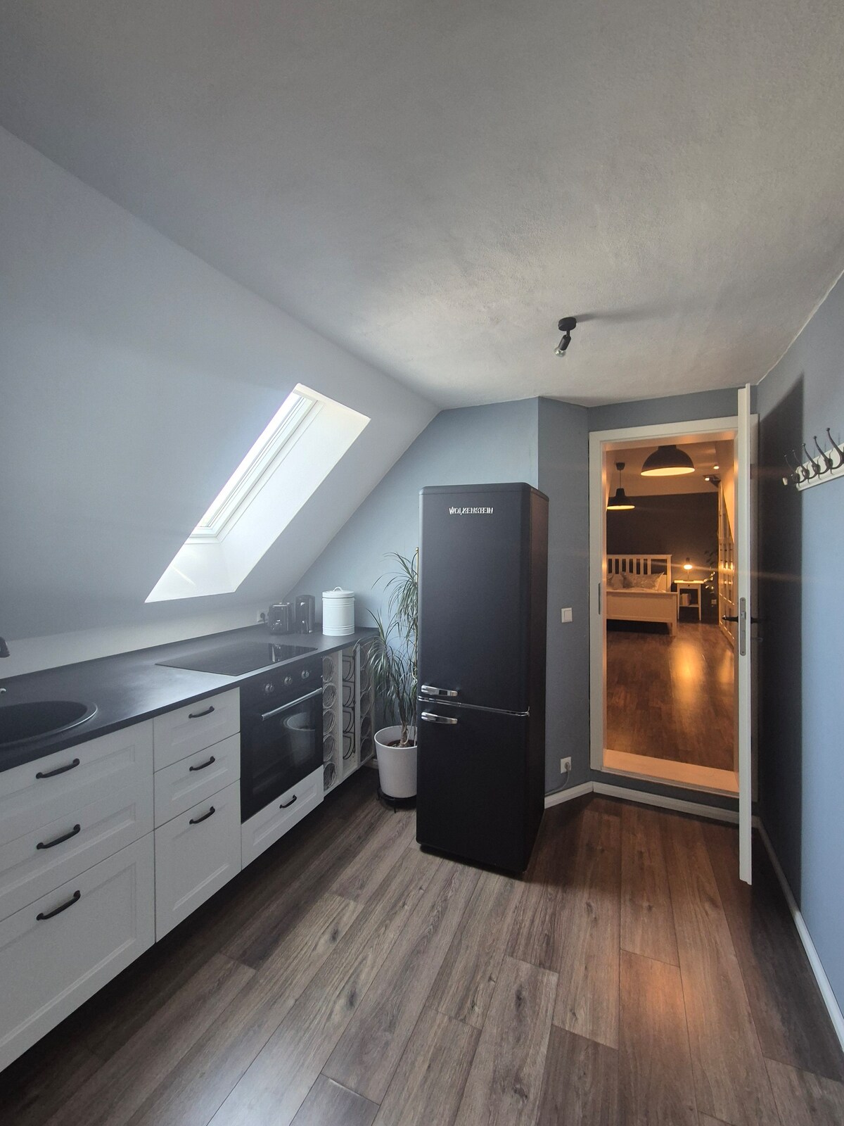 Apartamento en el ático a 20 minutos en coche de Potsdam y Berlín y a 30 minutos en tren de BER. Amplia cocina de diseño totalmente equipada*, baño con bañera Agape Vieques y lavabo a juego*, dormitorio con cama de 2,70 m*, el gimnasio se puede utilizar como segunda zona de dormitorio. Aquí hay una cama doble de 1,80 m*Proyector con aplicación preinstalada para NETFLIX, Disney + y Amazon Prime, juguetes, supermercado con panadería y carnicería, mercado de bebidas*Lagos de baño y senderismo