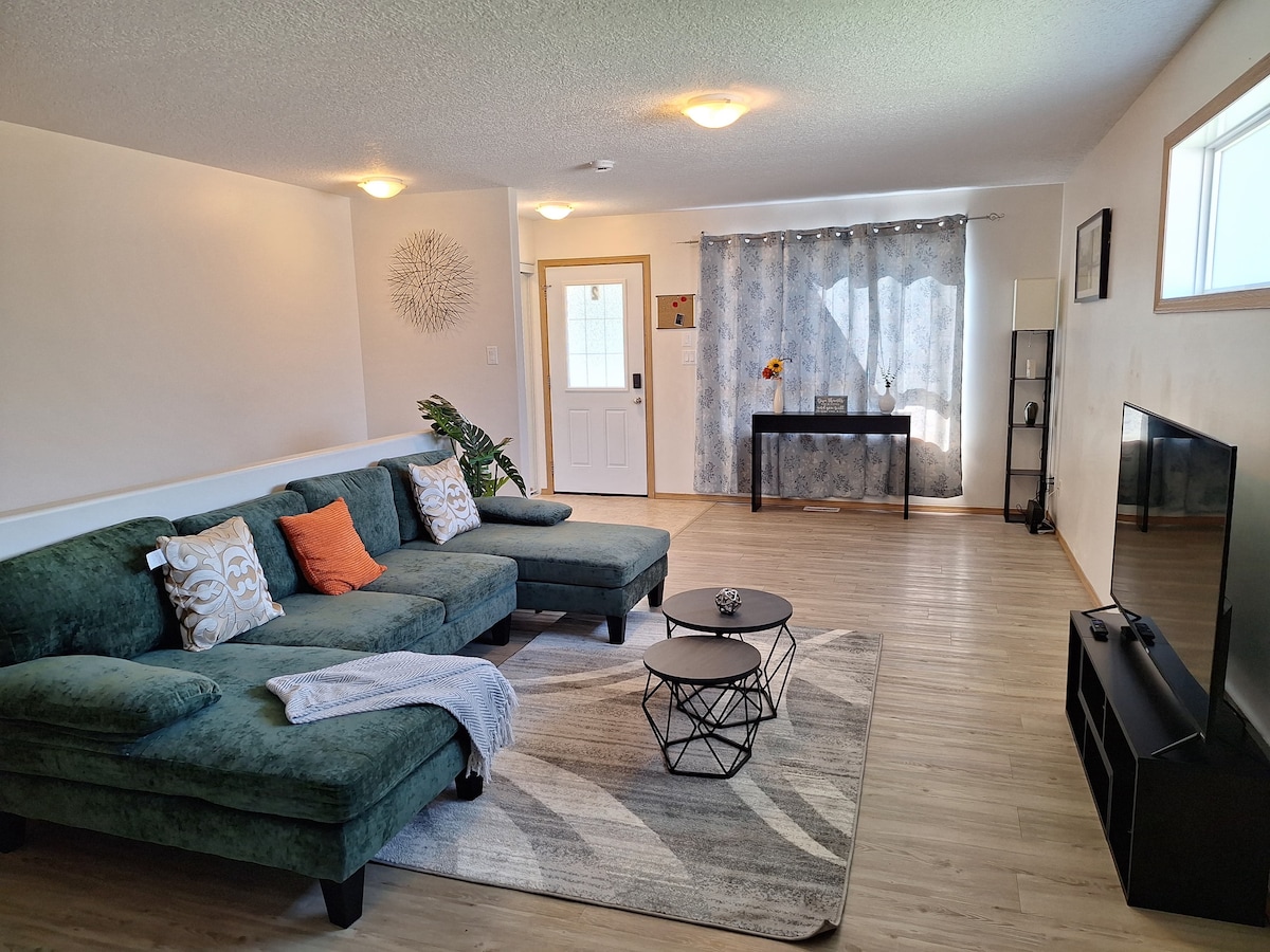 Esta suite en el sótano de 2 dormitorios bellamente diseñada ofrece una mezcla perfecta de estilo y comodidad. Dormitorios con lujosas camas tamaño queen, una acogedora sala de estar con TV de pantalla plana y una cocina totalmente equipada, ideal para familias, amigos o viajeros de negocios. Disfruta del baño completo, lavandería en la suite, wifi de alta velocidad y entrada privada con estacionamiento dedicado. Ubicada en un barrio seguro con fácil acceso a tiendas y restaurantes, esta suite cuenta con todo lo necesario para una estancia relajante y sin complicaciones.