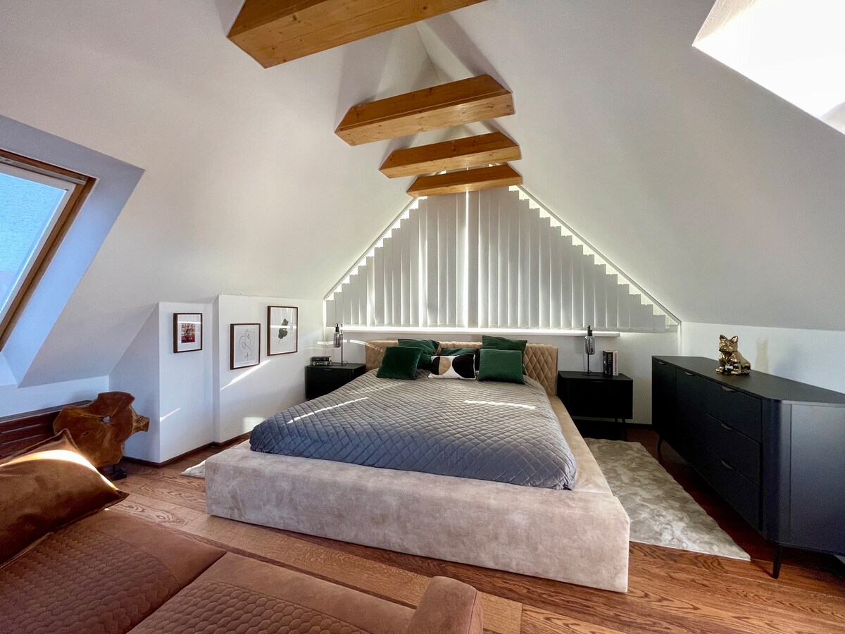 Disfruta de una comodidad digna de la realeza en esta elegante suite bajo el castillo de Bratislava. Disfruta de una acogedora chimenea, una lujosa cama tamaño king y un espacio de trabajo ajustable. La cocina y el baño totalmente equipados garantizan una estancia perfecta. Relájate en la logia con impresionantes vistas al Danubio y al puente UFO o camina hasta el casco antiguo/el castillo a la vuelta de la esquina y disfruta de todo lo que el casco antiguo tiene para ofrecer. Aparcamiento en garaje interior privado incluido. Un sofá cama de 140 cm tiene capacidad para 2 personas adicionales. Una mezcla perfecta de encanto, comodidad y ubicación.