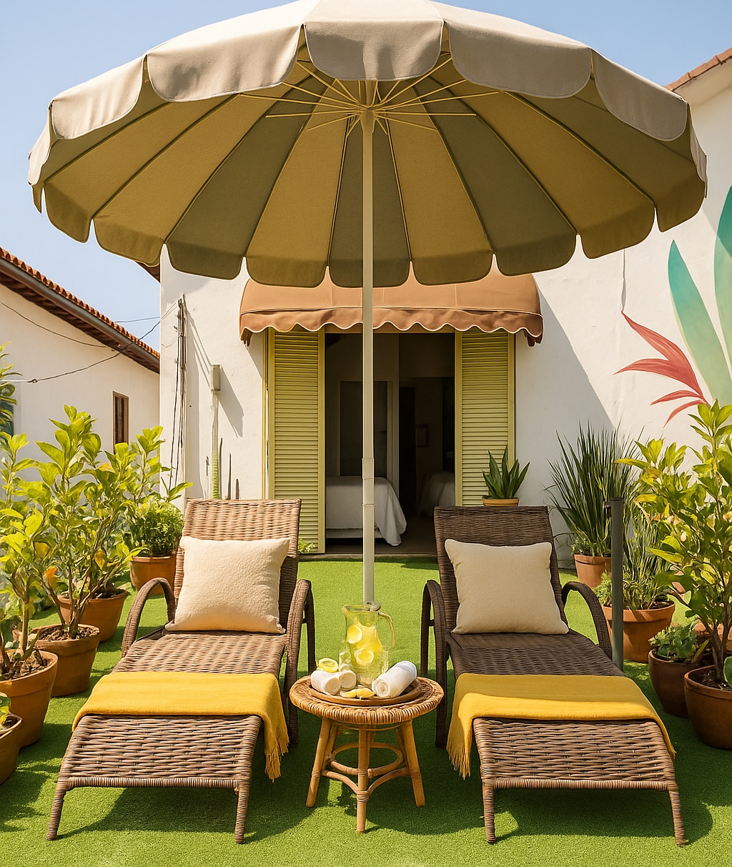 Ideal para una estancia de una semana o más, ya que el descuento es ventajoso (50% para 1 mes). Te despertarás escuchando el canto de los pájaros y descansarás en un balcón con hamaca disfrutando de la vista al patio de 2000m con árboles frutales. Se puede añadir un escritorio auxiliar. Ventilador de mesa y de pared. Muebles exclusivos hechos por el propietario. La pareja anfitriona vive en una casita en la parte trasera de la propiedad. Acogemos y respetamos todas las razas, religiones y géneros.