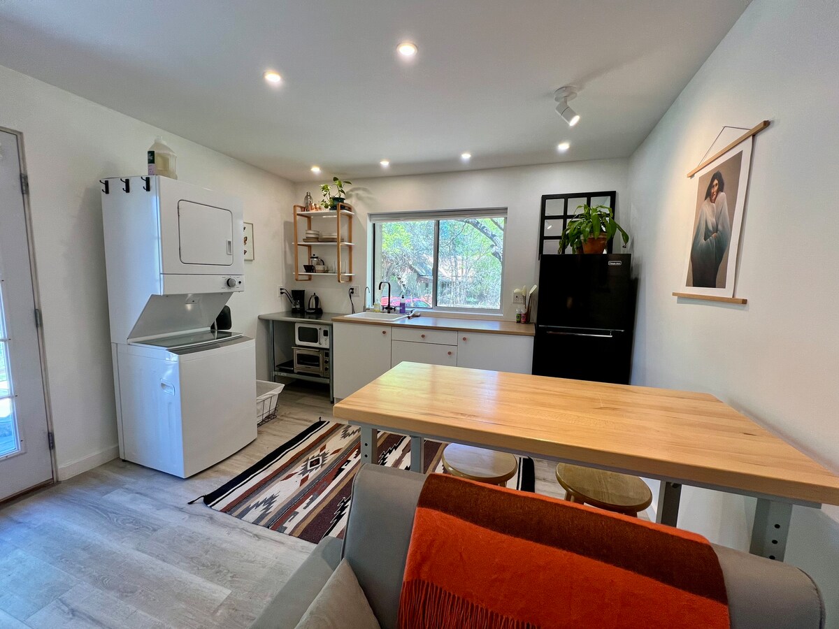 Full luxury. Breathtaking natural beauty. 1,475 sq ft Casita, with views of Abiquiu Lake, the red cliffs surrounding Ghost Ranch, and the 10,000 ft mountain Pedernal, all which Georgia O'Keefe made famous in her paintings. The kitchen has stainless steel appliances and a Bosch gas stove with heavy gauge grills. There's a stainless BBQ just outside on the portal. The Master BR has a slate shower and deep soaking tub. Both bedrooms have Queen beds, + a Full Size Inflatable Mattress available.