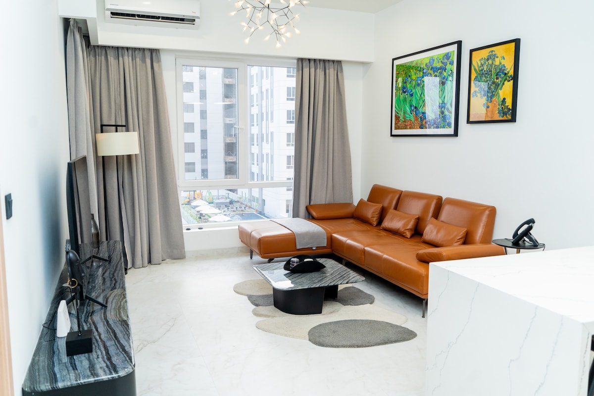 Disfruta de una estancia elegante en un apartamento nuevo y luminoso en el centro de la ciudad. Diseño moderno, habitación espaciosa con cama doble, balcón y vestidor, acogedor salón, baño + aseo, cocina americana equipada (horno, microondas, nevera, hervidor, batidora, vajilla) y lavandería con lavadora/secadora. Acceso a la piscina, gimnasio, terraza panorámica, sala de juegos. Edificio con seguridad 24/7, agua y electricidad garantizadas. Depósito de garantía: 200 $ reembolsables.