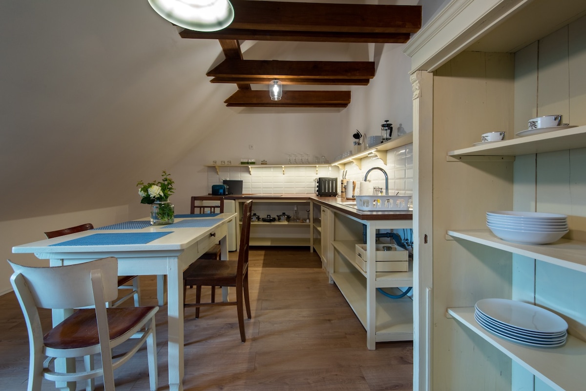 Agradable alojamiento privado bajo el río Palava, que será tu tranquila base en una casa histórica con un jardín desde el que podrás descubrir la belleza, los sabores y los olores de la región vinícola. El apartamento Hnízdo está situado en el ático de una casa reformada de alrededor de 1840. Hay escaleras para llegar, por lo que no es adecuado para aquellos que tienen problemas con las escaleras. Los huéspedes Nests tienen su propia mesa y sombrilla en el patio trasero. Ofrecemos una selección de enólogos locales y ofrecemos a los huéspedes consejos para viajes.