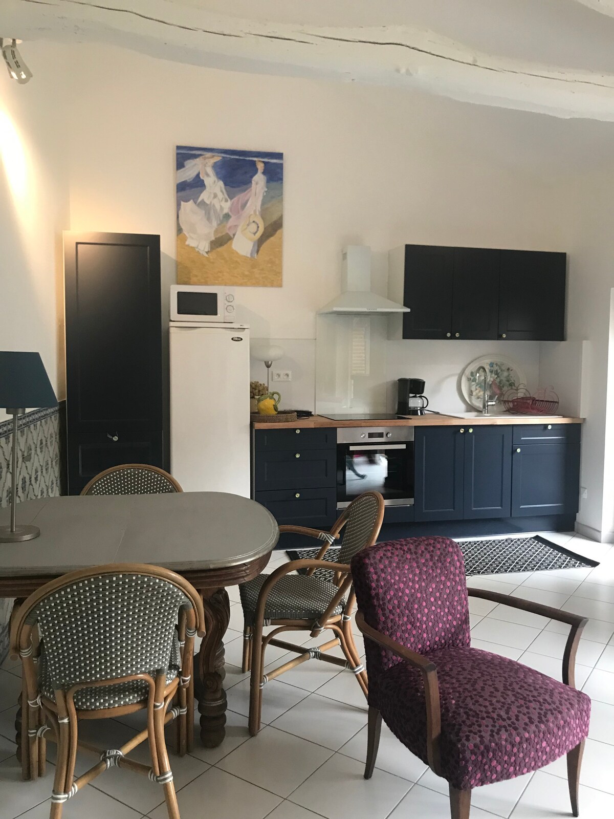 Una vez que se abre la puerta que da a la calle, la magia está en el lugar. Le ofrezco un estudio independiente en la planta baja de una gran casa de pueblo Tranquilo, ya que está separado de la calle por un pasillo y el jardín del párroco. Pequeño refugio en pleno centro sin ruido, salvo el gorgoteo de la fuente. Equipamiento de calidad ropa de cama de 160 la cocina está equipada Aparcamiento gratuito cerca. Será un placer darle la bienvenida y hacer todo lo posible para que su estancia sea muy agradable.