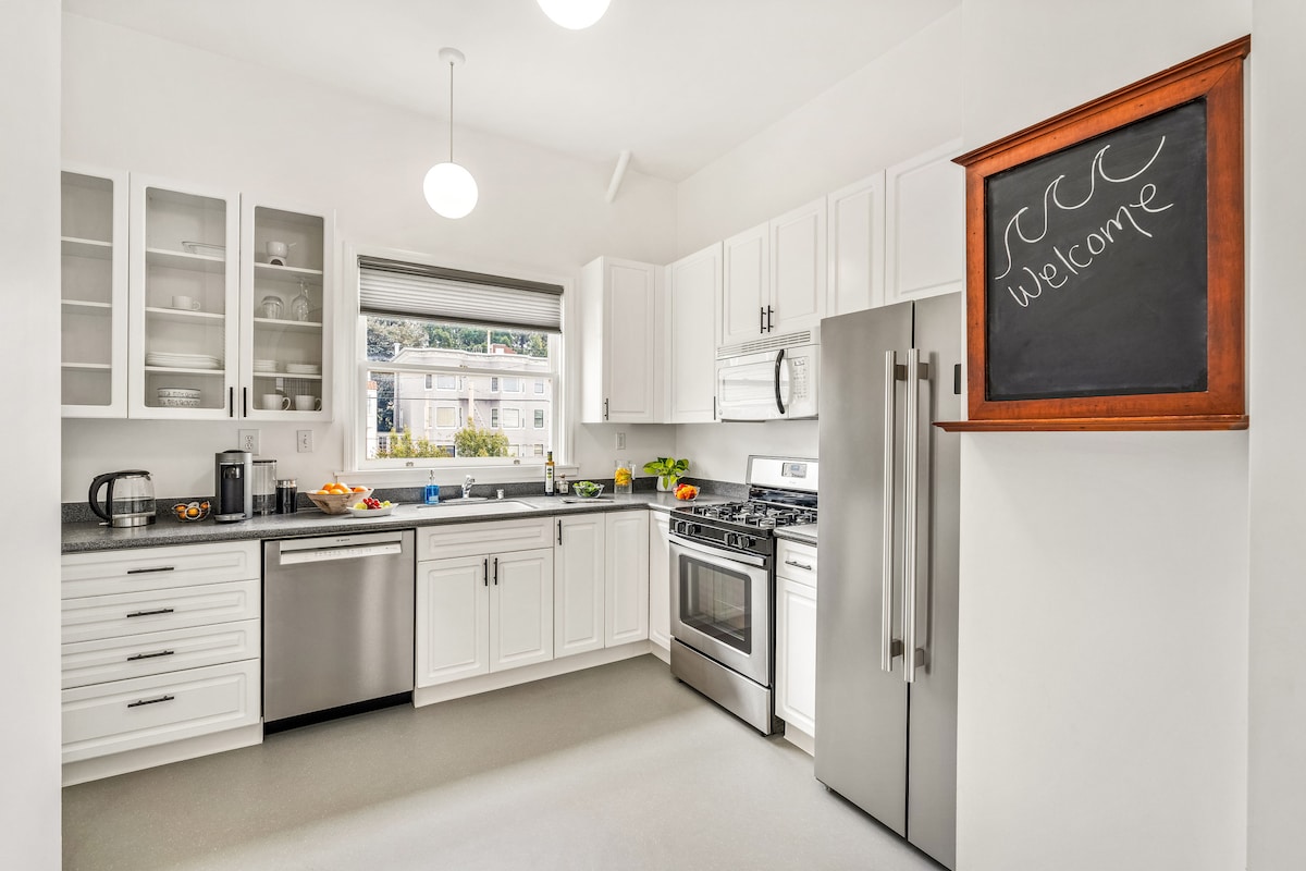 ¡Perfecto para viajes de trabajo ejecutivo y vacaciones grupales! ¡Bienvenido! Siéntete como en casa en el condominio de techo alto totalmente equipado y naturalmente bien iluminado que tiene capacidad para 6 personas cómodamente. Ubicado en el límite de los barrios seguros de Hayes Valley y Lower Haight, ¡tienes una ubicación absolutamente céntrica cerca de todo en San Francisco! Ya sea que estés disfrutando de comidas preparadas en la cocina completa o de las numerosas opciones de restaurantes a poca distancia, ¡tendrás un gran viaje!
