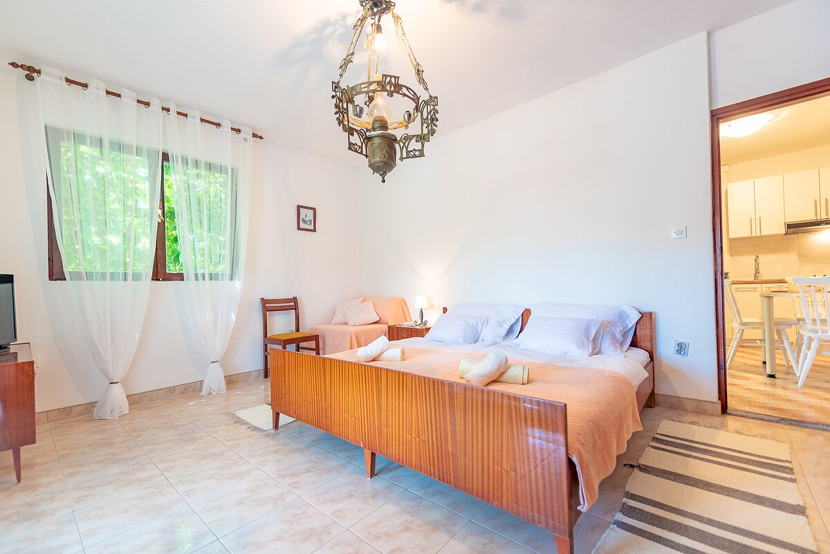 Beautiful view of the sea and neighboring islands. Quiet environment with very comfortable climate. Near two restaurants with very tasty seafood specialties, as well as a shop with daily necessities, post office and tourist board Zman. City beach with a nice entrance to the sea. Žman is located in the bay called Žmančica, surrounded by hills Gračine , Veliki Slotnjak and Mali Slotnjak. It is mentioned in the 13th century under the name Mezano, and from that time dates the parish church of St. John, while in the vicinity of the village there are sites from the prehistoric era. Žman is exceptional due to its fertile fields located in the area of Malo jezero and Veliko jezero, which makes the people from Žman highly skilled farmers. The locals will be happy to offer their guests the fruits of their hands; a taste of local wine, cheese and olive oil will certainly be remembered by all lovers of good food.