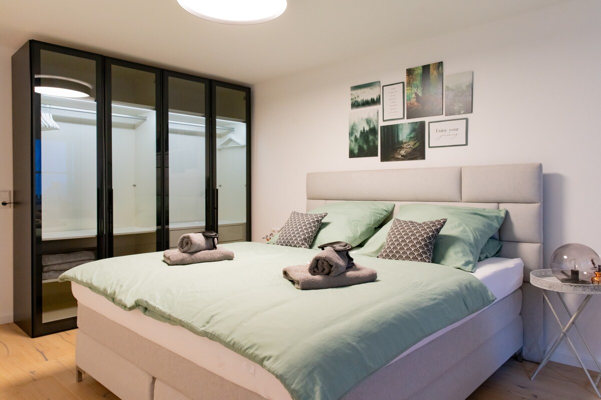 ¡Bienvenido a la nueva zona residencial "Friedrichspark" en Villingen ubicada en el borde de la Selva Negra! Nuestro Departamento de Selva Negra con balcón cuenta con todo lo necesario para una buena estadía. --> Cama tamaño king --> Balcón. --> 2 televisores inteligentes --> cafetera --> cocina totalmente equipada --> lavadora --> La mejor conexión VSBus de 100 metros frente a la puerta principal *"Ya estábamos por segunda vez en este maravilloso apartamento. Todo fue perfecto como siempre ”.