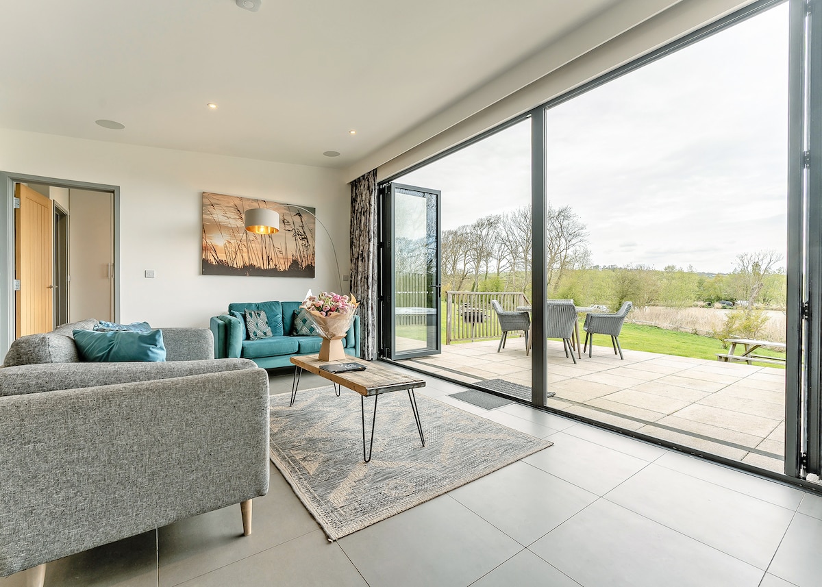 Hermoso albergue de lujo con sala de estar central de planta abierta con dormitorios en cada extremo para maximizar la privacidad y las vistas panorámicas.