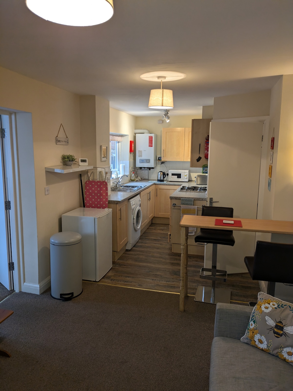 Nuestro encantador apartamento independiente en el primer piso es tuyo para disfrutar en su totalidad. Situado en el corazón de Worthing con una maravillosa selección de cafeterías independientes, restaurantes, bares y tiendas a la vuelta de la esquina. A 5 minutos de la playa, el muelle art déco y los teatros. Recién reformado con un alto nivel de calidad, con cocina, baño y alfombras nuevas en todas partes. Gran salón orientado al sur con ventana de bahía con un sofá cama supercómodo que se abre a una pequeña cama doble. Habitación luminosa con cama de matrimonio.