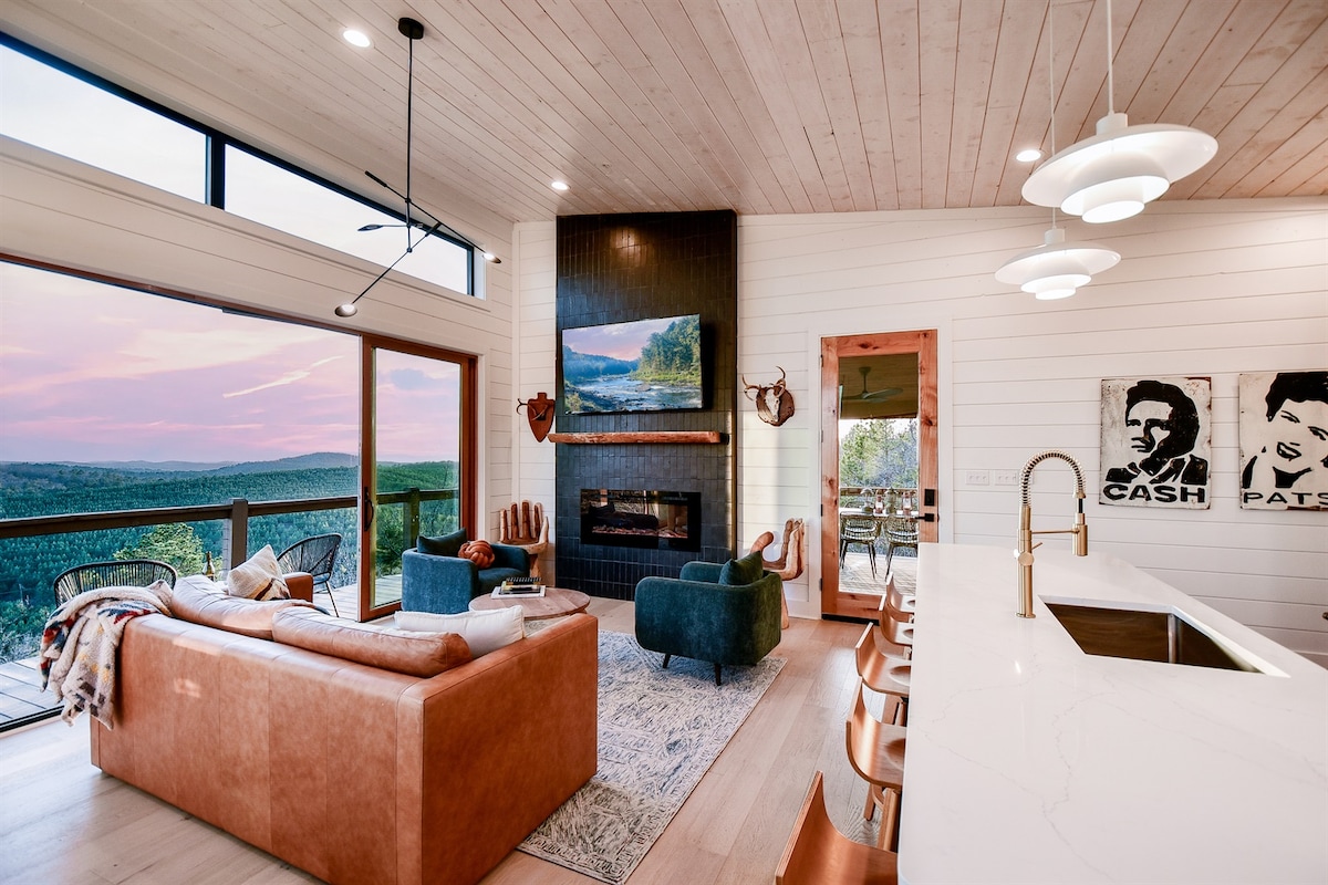 Corazón de Hochatown, familia, chimenea al aire libre @pinpointstays