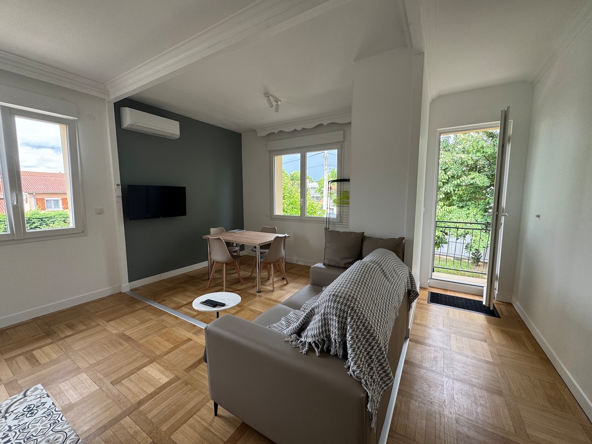 Apartamento de 32 m2 renovado en la 1.ª planta de una casa unifamiliar de 1928 con entrada independiente. Aire acondicionado con internet de alta velocidad. Tendrá acceso independiente a la vivienda, que está muy bien comunicada por transporte público (tranvía T3 y T6 frente a la casa, autobús TB11/C11/C9/C26 a 5 minutos). Se encuentra en un barrio animado y popular de Villeurbanne con todos los servicios en las inmediaciones. Acceso rápido al estadio Groupama, LDLC Arena, estación Part Dieu, aeropuerto, Eurexpo, hospitales.