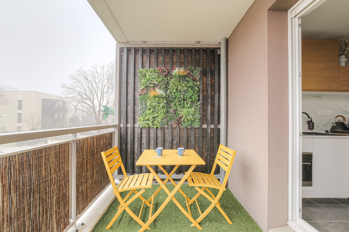 Estudio y terraza acogedores con todas las comodidades cerca de eurexpo