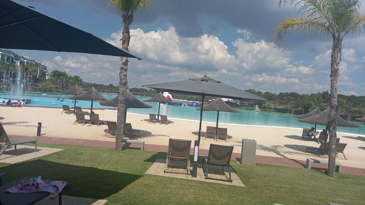 El apartamento de planta abierta está amueblado con una cama tamaño queen, tiene una ducha en suite y una cocina totalmente equipada con estufa y horno, microondas y un televisor inteligente de 43pulgadas con Netflix, y hay wifi gratuito disponible. Tu propio DSTV se puede conectar para transmitir. Patio privado y zona de barbacoa justo al lado de la piscina