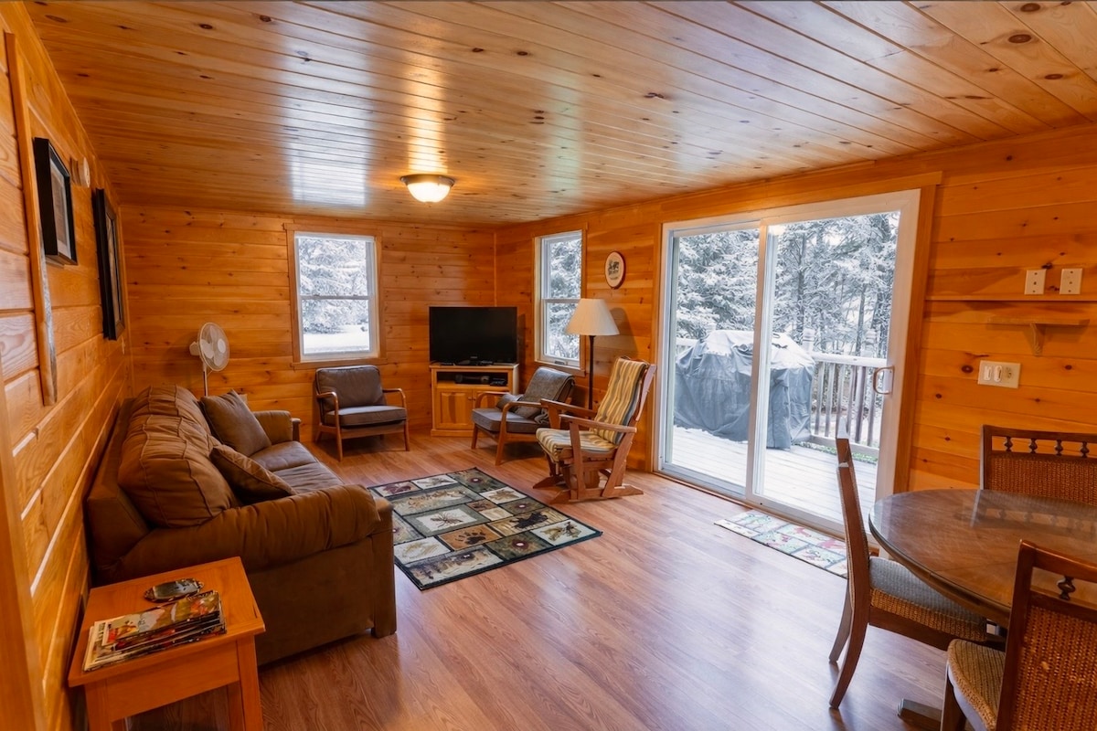 Cabaña para 4 personas con capacidad para 3 personas: cama de matrimonio y cama individual, baño privado. El calor de Rinnai y los suelos radiantes hacen que el baño privado sea cálido. Motonieve en invierno desde tu cabaña hasta nuestro conector con Maine ITS. Dos campos de golf a menos de 5 millas, lagos para nadar, paseos en bote y pesca. Excursión de un día a Bar Harbor, Baxter State Park, incluido el monte Katahdin y el final del sendero de los Apalaches. O visita la región del lago Moosehead y el sitio de Elephant Mt. del lugar del accidente del bombardero B52. Aeropuerto internacional de Bangor.