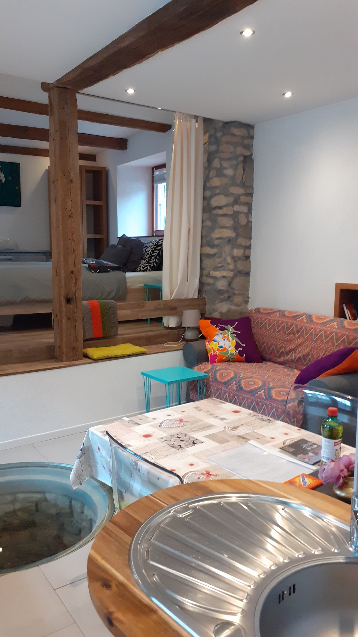 Apartamento con una cocina totalmente equipada, abierta a la sala de estar, un baño y un dormitorio (cama doble). Disfrutará de nuestro alojamiento por su ubicación privilegiada en el campo. El acceso separado a nuestra villa lo hace totalmente independiente. Ideal para viajeros en solitario y parejas. El transporte público se encuentra a 5 minutos a pie.