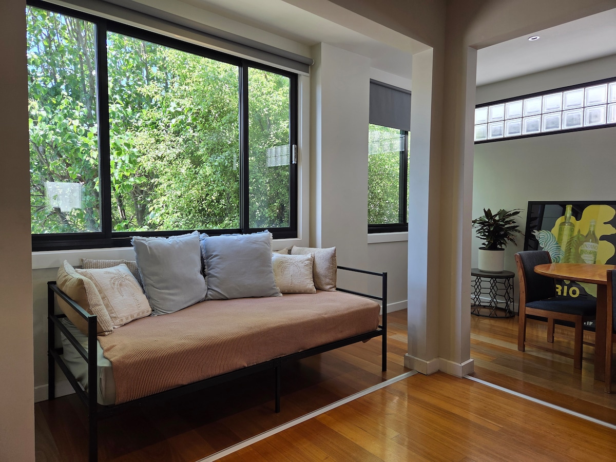 Casa adosada casi nueva con TRES aparatos de aire acondicionado (calefacción/refrigeración), uno en cada habitación. SE HA SUSTITUIDO EL SOFÁ CAMA (ahora 1,44 m x 2 m). 2 dormitorios, 2 baños completos. Cama tamaño king (1,8 m x 2 m) en el dormitorio de arriba. Dos camas individuales en el dormitorio de abajo. Cómodos colchones con muelles ensacados y cubrecolchones europeos. Televisor inteligente de 65 pulgadas. Wifi rápido con red NBN. Cocina totalmente equipada y electrodomésticos de calidad. Máquina combinada de lavadora y secadora. Un balcón para relajarse y sentir la brisa.