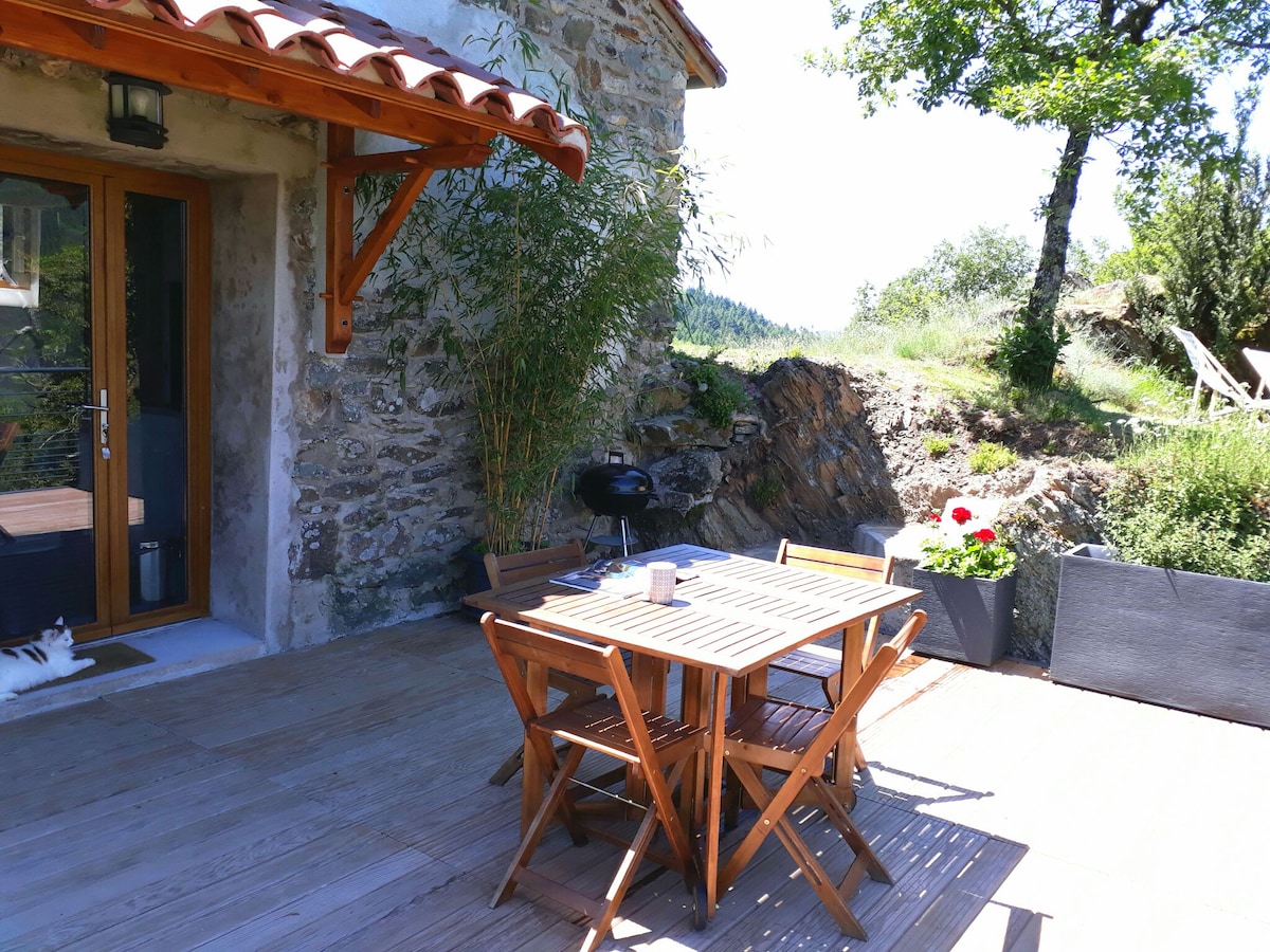 La casa está situada en plena naturaleza, se puede disfrutar de la paz y la tranquilidad del lugar, ir de excursión y visitar muchos lugares de interés. Casa rural reformada de 18 m², con aire acondicionado, una sala de estar (TV), una cocina americana (nevera, 2 fogones, horno COMBINADO, cafetera SENSEO, etc.), un dormitorio en el altillo, un baño con ducha y WC, una terraza de 20 m² y una pequeña zona de césped, con vistas al río y al valle.