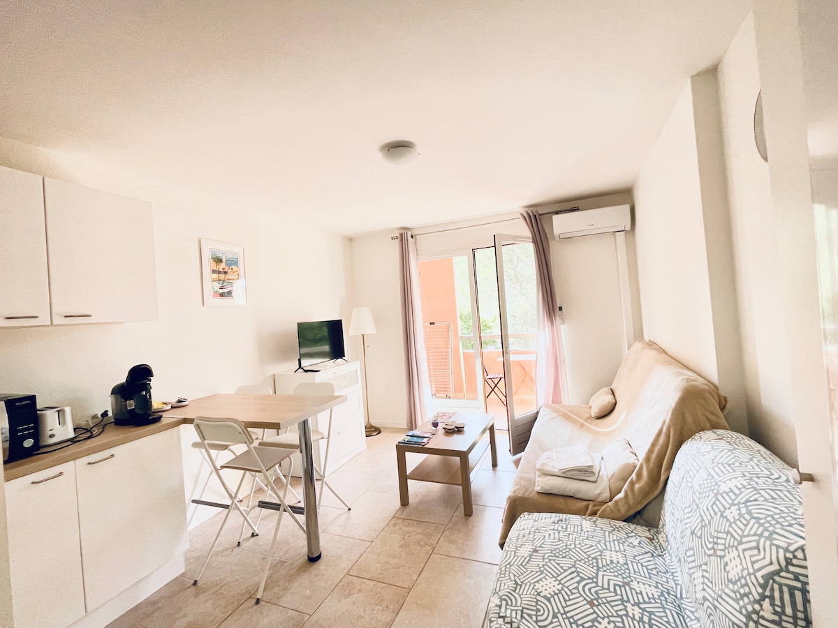 Bonito apartamento reformado y con aire acondicionado, en el segundo piso (sin ascensor) de una residencia arbolada con piscina. Convenientemente situado en Sanary-sur-Mer, entre la estación de tren (a 12 minutos a pie) y el puerto (a 15/20 minutos a pie). Residencia segura. Una plaza de aparcamiento está disponible de forma gratuita. Podrá venir a alojarse en pareja, en familia, con amigos o en sus viajes de negocios. El acceso a la autopista se encuentra a solo 2 minutos en coche.