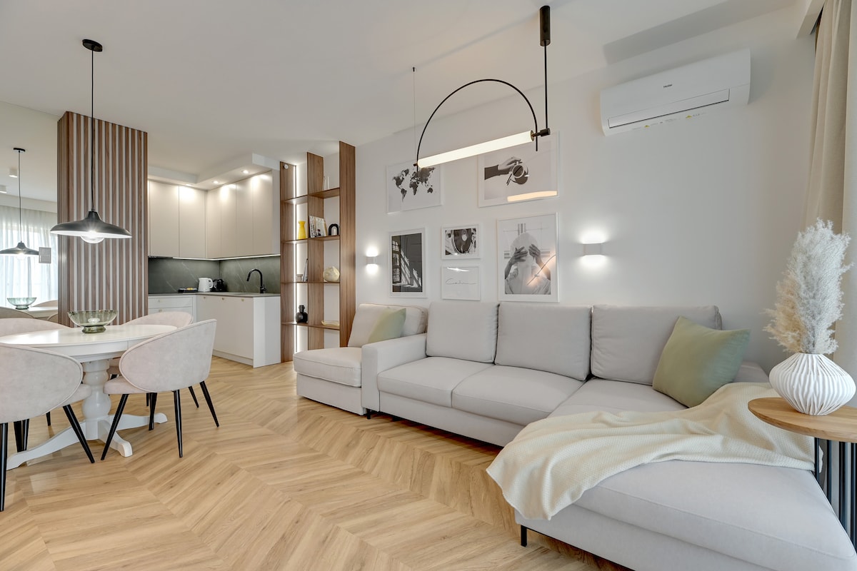 Los apartamentos del centro son una combinación perfecta del hotel de primera clase con la funcionalidad de tu propio apartamento. Las sábanas agradables y blancas como la nieve y el juego de dos almohadas para cada huésped son estándar. Además, un conjunto obligatorio de cosméticos que consta de un champú, gel de buen olor, acondicionador capilar y loción corporal. La estancia de nuestros huéspedes también se hace más agradable con un paquete de bienvenida en forma de paquete de té, café y especias básicas.