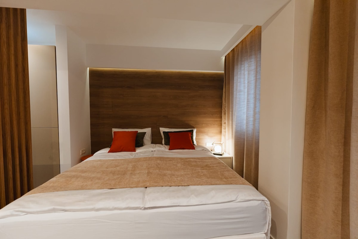 Estudios modernos y acogedores con un diseño elegante y accesorios de calidad. Amplio y luminoso, ideal para relajarse o trabajar a distancia. Disfrutarás de cómodas camas, aire acondicionado y un ambiente exquisito, perfecto para una estancia relajante.