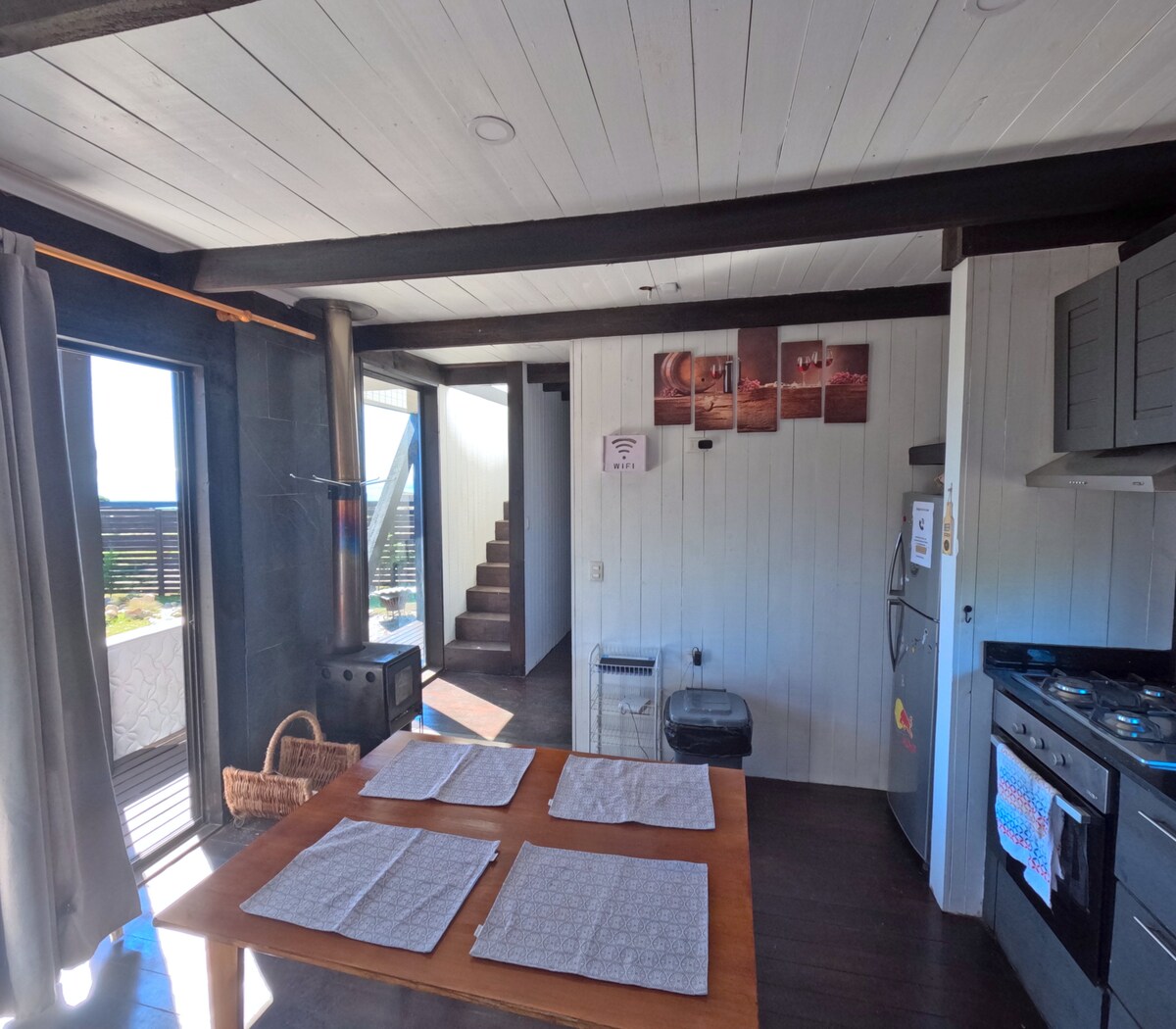 Descanso y desconexión para 1, 2 o hasta 7 personas en el centro de Buchupureo. Amplia casa de 104 m2 con ladrillos y vigas a la vista. 2 estufas a leña de combustión lenta. A 2 cuadras de la plaza de Buchupureo. Cercana a playas, restaurantes y comercio. Ideal para familias, parejas o esa necesaria escapada en solitario(a).