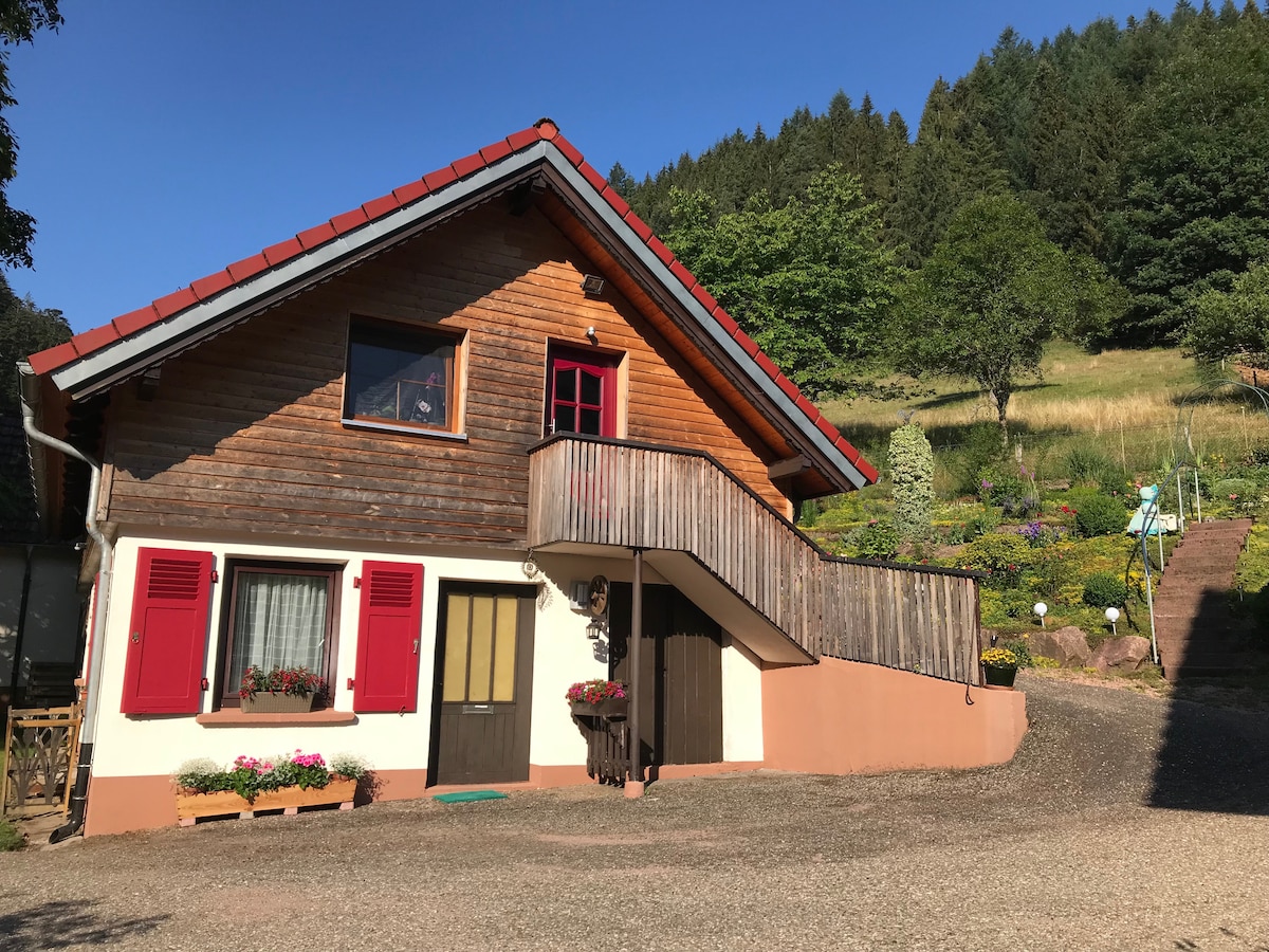 Our Heidi House is located in the middle of the Black Forest, in a small valley surrounded by green meadows. Next to the Heidi house is the farm we live on. The Heidi house is detached and has a separate entrance, so your privacy is guaranteed. The farm is located at the end of a road, with no traffic passing through, and is surrounded by meadows, fruit trees and forest. Our own stream and a small pond with a bench on the property invite you to relax.