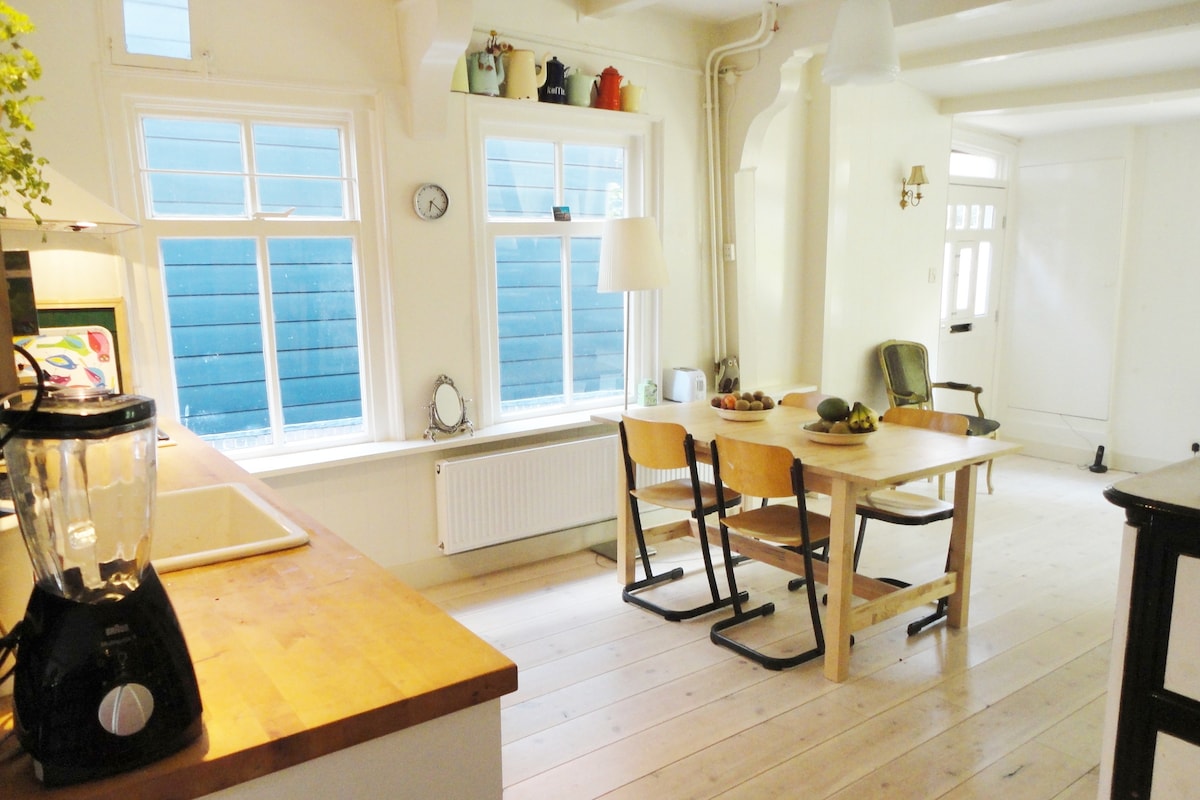 Alquilas la planta superior de nuestra casa flotante: un lugar tranquilo con hermosas vistas sobre el agua, cerca de Ámsterdam Central. Con el ferry gratuito, puedes llegar al bullicioso centro de la ciudad en 15 minutos, mientras que en el barco puedes disfrutar del silencio. Extra agradable: plazas de aparcamiento privado gratuitas justo delante de la puerta, algo único en Ámsterdam, donde el aparcamiento suele ser muy caro.
